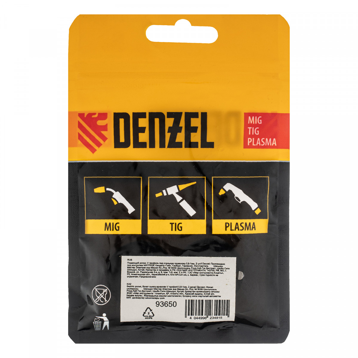 Подающий ролик Denzel 93650 с V-профилем, 2 шт. в упаковке, — элемент конструкции сварочного аппарата, предназначенный для протягивания стальной проволоки диаметром 0,8-1 мм. Совместим с моделями Denzel 94313, 94314, 94361, а также со сварочными полуавтоматами других торговых марок.