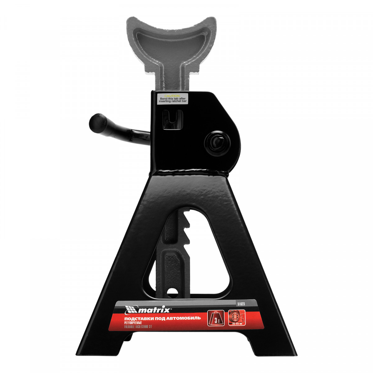 Регулируемые подставки под автомобиль Matrix 51623 с несущей способностью 3 т, 2 шт. в комплекте, удерживают груз на высоте 295-425 мм. Их используют в качестве средства дополнительной фиксации и страховки легкового автомобиля, поднятого на подъемнике или домкрате. Конструкцией предусмотрен зубчатый механизм, надежно удерживающий шток в выдвинутом положении. Подставки пригодятся в гараже или автосервисе во время проведения ремонтных работ.
