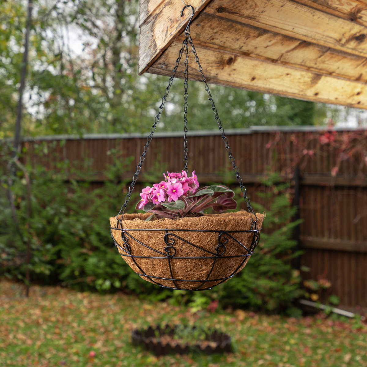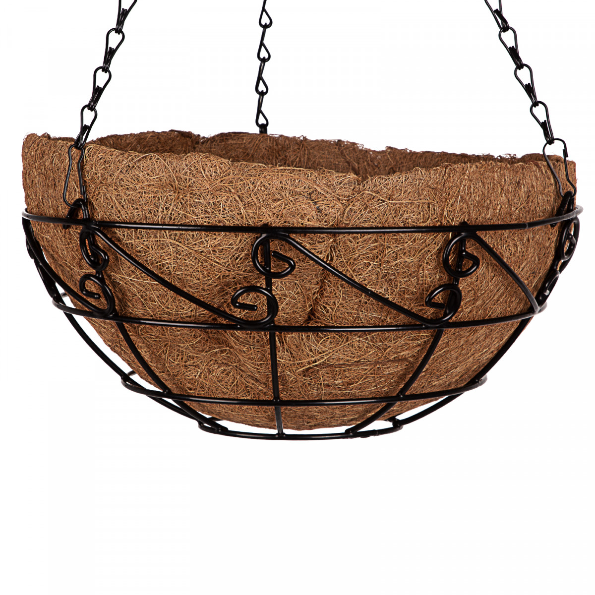 Кашпо подвесное Palisad 69004 диаметром 30 см, с орнаментом и кокосовой корзиной, предназначено для выращивания цветов, создания оригинального дизайна и украшения дома или сада. Подходит для всех типов ампельных и вьющихся растений. Кашпо можно повесить в помещении или на улице.