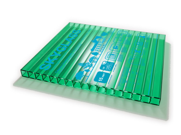 Сотовый поликарбонат SKYGLASS — представляет марку, отличающуюся оптимальным соотношением цены и качества, с защитой от UV-излучения 30 мкм.