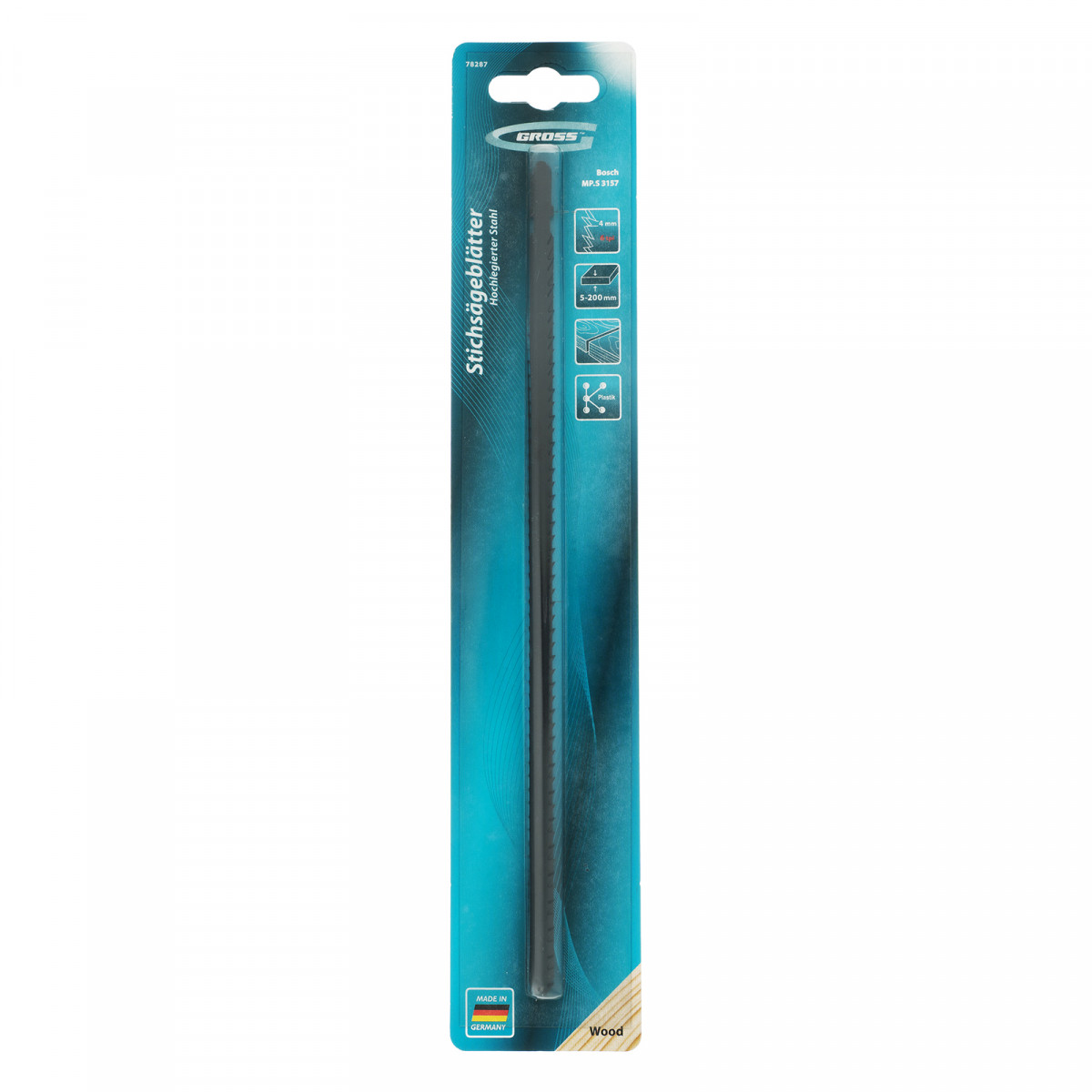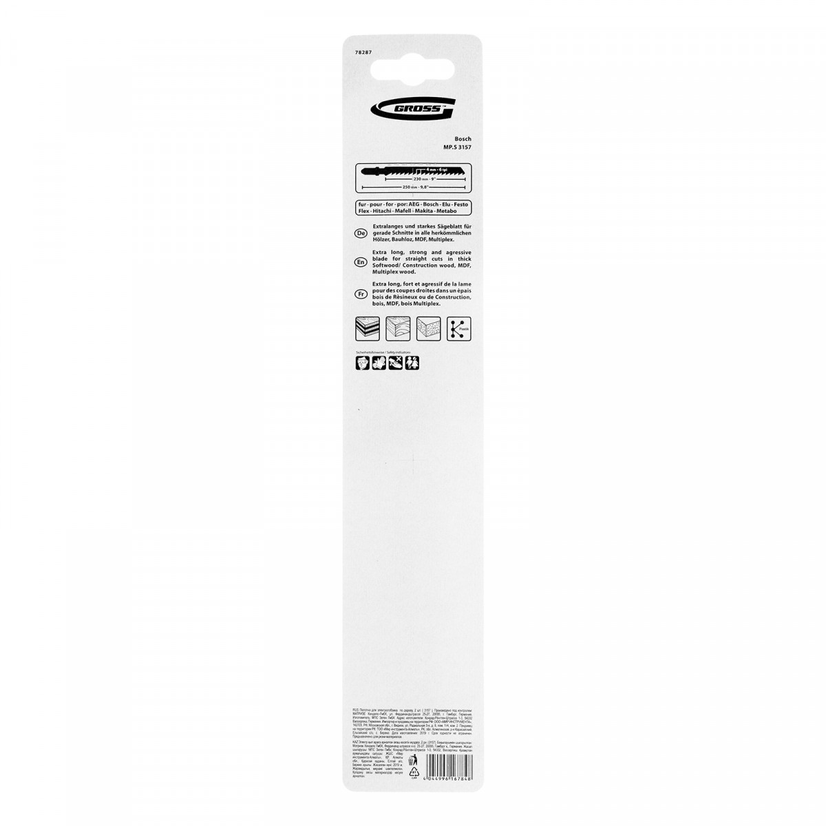 - Эффективность — удлиненный профиль и шаг зубьев 4 мм обеспечивают высокую скорость распила и позволяют работать не только с листовыми материалами, но и с заготовками разной формы.