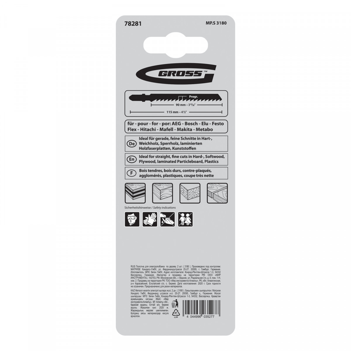 Полотна по дереву Gross 78281, 2 шт. (3180), являются сменными режущими элементами для большинства современных моделей электролобзиков. Осуществляют прямой рез заготовок из древесины и изделий толщиной 1-80 мм. Высококачественные полотна пригодятся профессиональным мастерам в ходе проведения ремонтных и строительных работ.