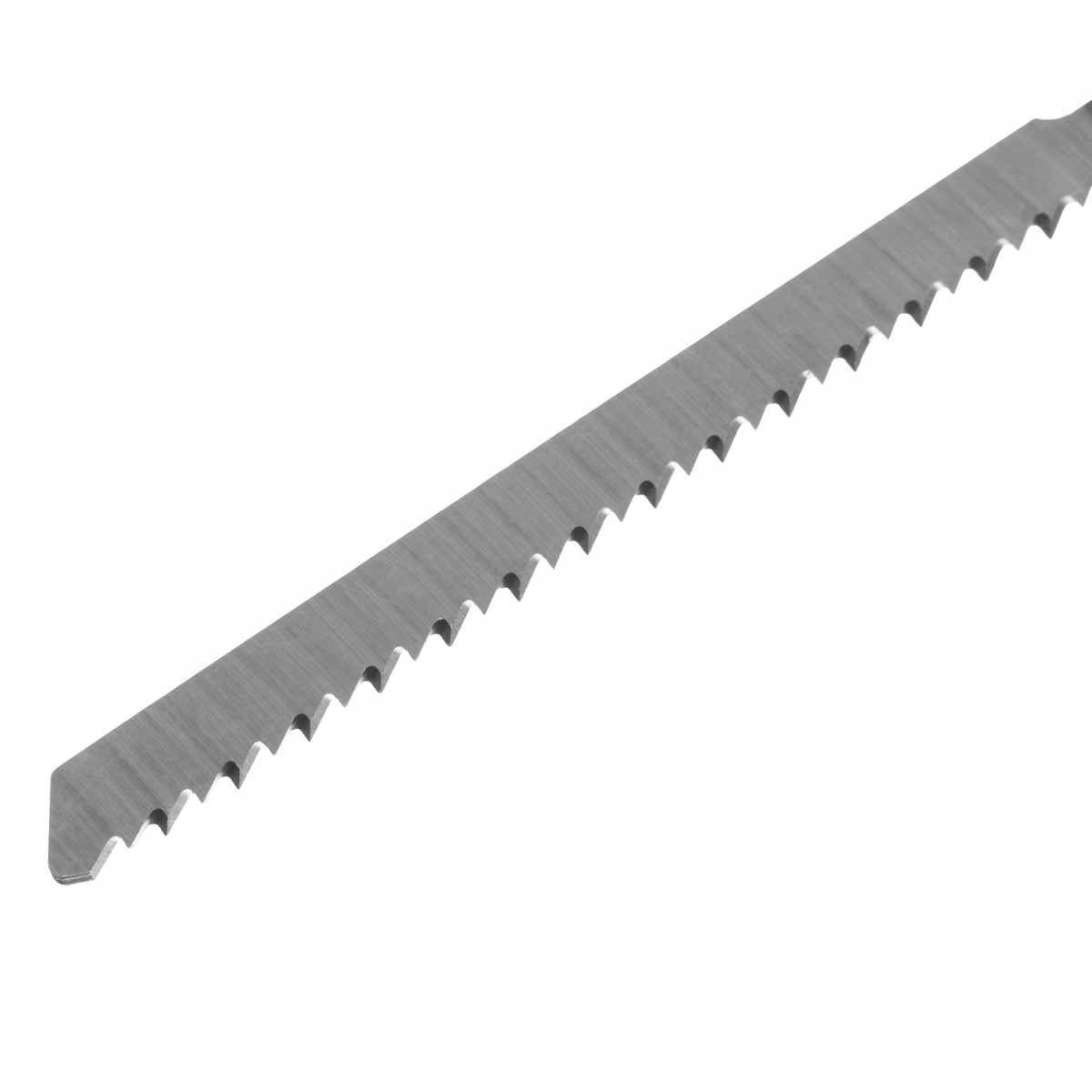 Полотна для электролобзика T101BRF Matrix 78213 с шагом зубьев 2,5 мм, с обратным зубом, биметаллические (Bimetal), 3 шт. в упаковке, имеют рабочую длину 75 мм и используются для работ по дереву. Позволяют распилить фанеру, древесину, ДСП толщиной до 30 мм, эффективны для работы с клееными и ламинированными материалами. Шлифованные зубья позволяют получить тонкий и чистый распил. Полотна можно устанавливать на электролобзики с зажимом под Т-образный хвостовик. Пилки пригодятся во время ремонта и для решения бытовых задач.
