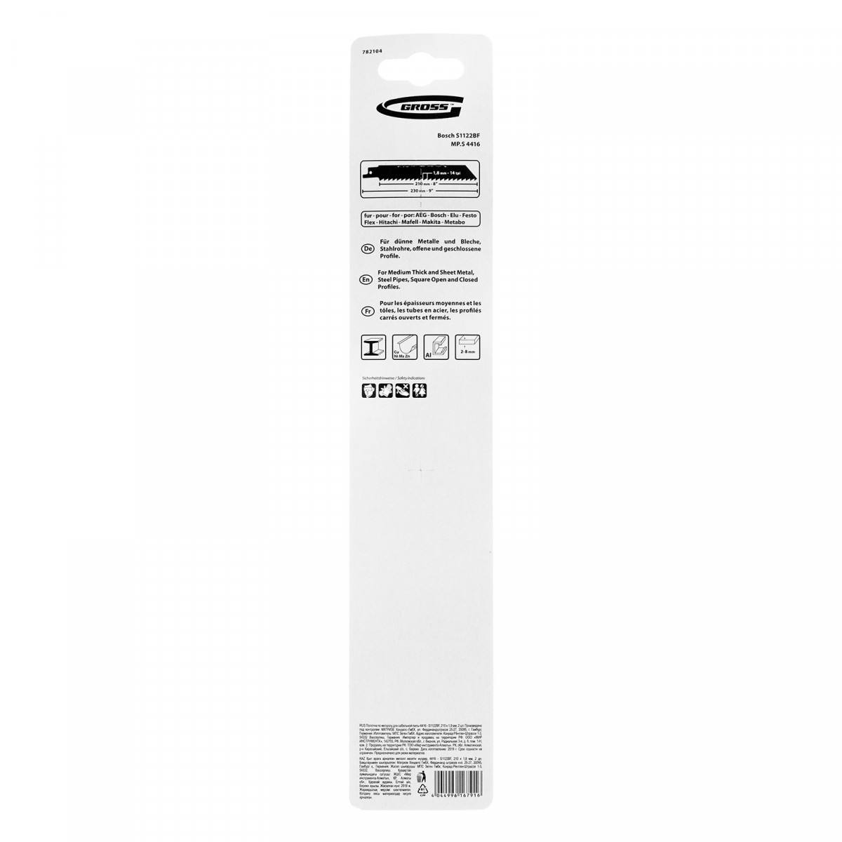 Полотна по металлу для сабельной пилы 4416 - S1122BF, 210 x 1.8 мм, 2 шт. Gross