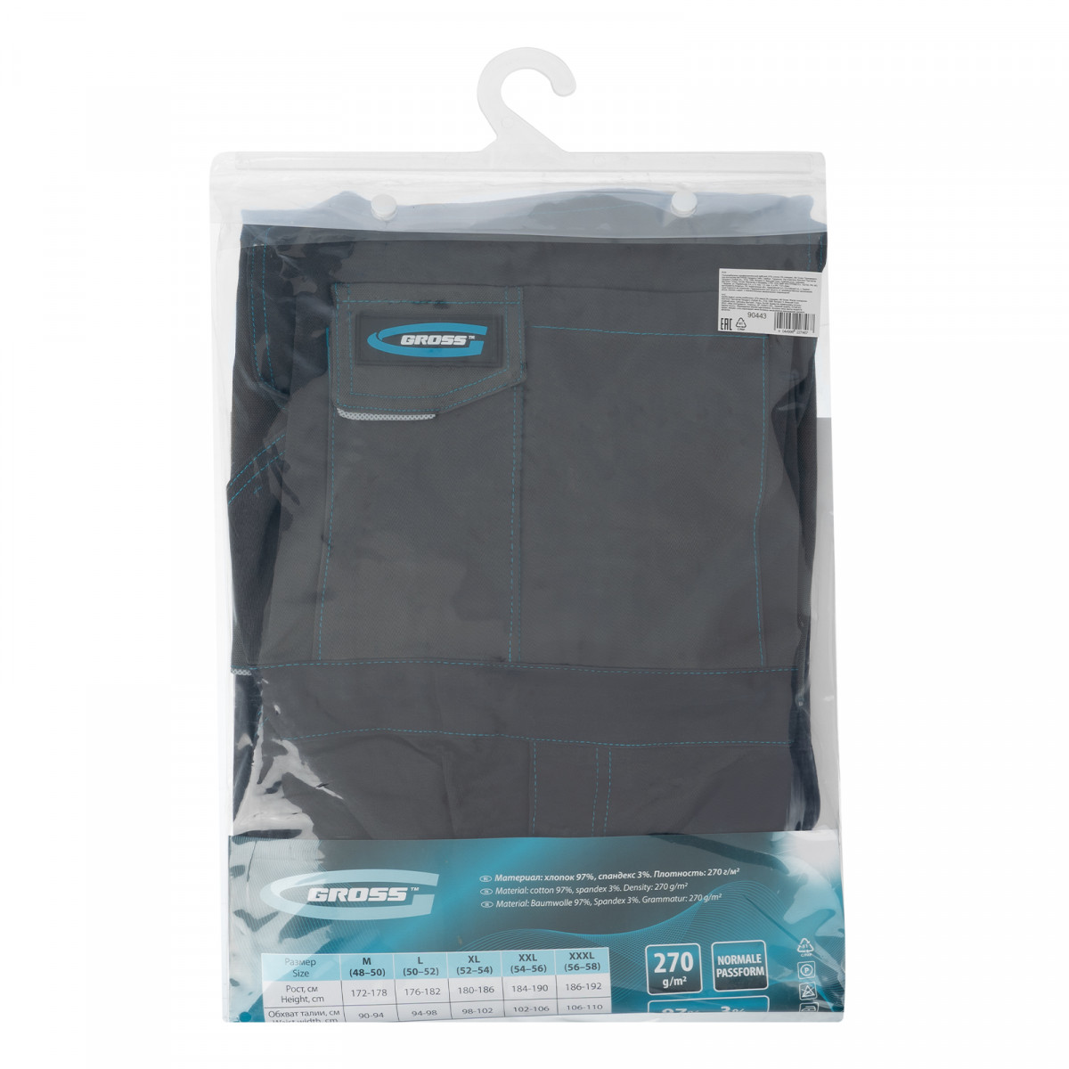 Полукомбинезон профессиональный рабочий, 97% хлопок 3% спандекс, L Gross