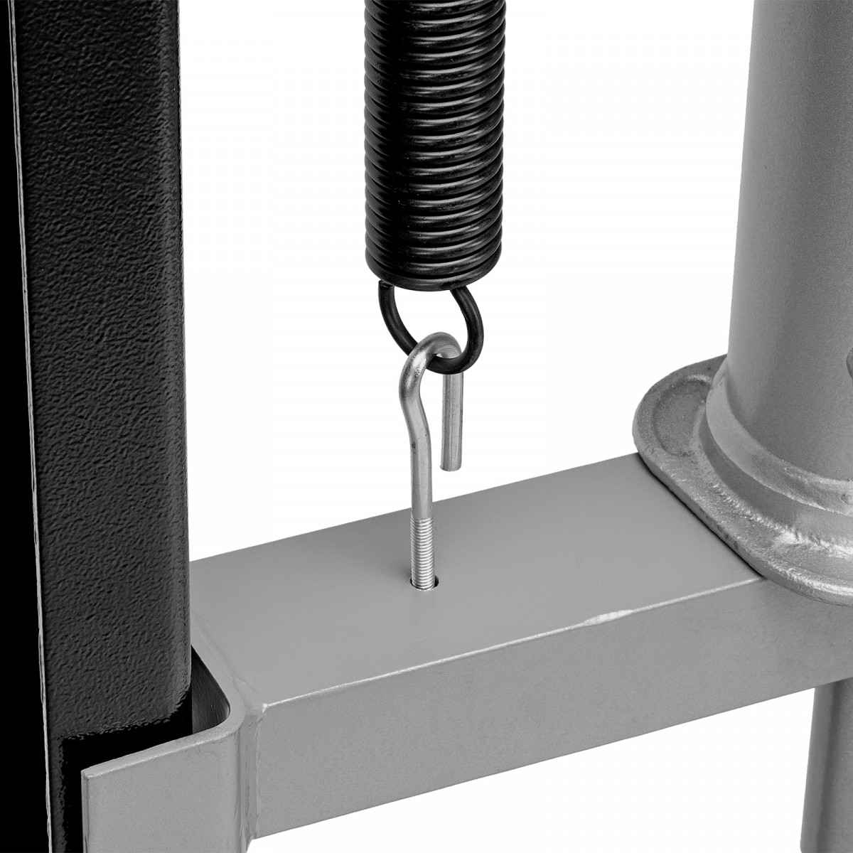 Гидравлический пресс Matrix 523105 размером 1360 х 500 х 510 мм, воздействующий на детали с усилием 12 т, поставляется комплектом из 2 частей. Используется для запрессовки и выпрессовки различных деталей, необходимых для ремонта автомобилей. Изготовлен из толстого прочного металла и имеет простую разборную конструкцию из верхней и нижней балок, стоек, станин и гидравлического бутылочного домкрата. Пресс подойдет для самостоятельного использования в гараже.