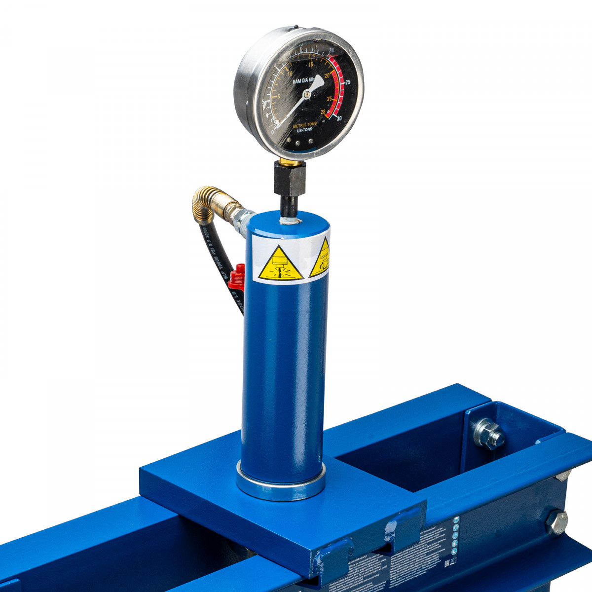 Гидравлический пресс Stels 52303 с манометром поставляется комплектом из 2 частей и способен развивать усилие до 20 т. Его используют для запрессовки и выпрессовки подшипников, втулок, сайлентблоков, штифтов и других деталей. Для контроля давления предусмотрен глицеринозаполненный манометр. Высококачественный гидравлический насос с ручным приводом обеспечивает плавный ход штока. Пресс будет полезен в автосервисе или гараже.