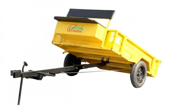Универсальный самосвальный прицеп ПМ-01 Целина ПМ01000 подходит для мотоблоков Целина, Каскад, Кадви, Нева и предназначен для перевозки сельскохозяйственных, строительных и прочих грузов. Для размещения пользователя предусмотрено сидение. Прицеп оснащен пневматическими шинами, ленточными тормозами и неразборной рамой.