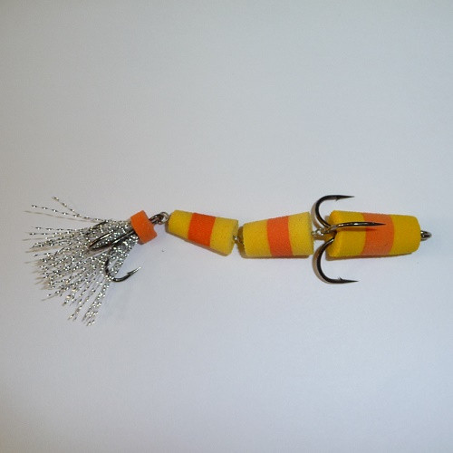 Трехсоставная Mодель №15 является удлиненным вариантом популярной Модели №1. Более подвижный хвостик добавляет дополнительные колебания в игру приманки и повышает её подвижность и уловистость. Для ловли судака, щуки и сома методом джига, ловит окуня, жереха и др. Попадаются даже сазан и лещ. Обладает отличной баллистикой, что важно при ловле с берега. При хорошем клёве, рыба садится на большой тройник, при слабом - кусает за хвост и прихватывает тот тройник, что поменьше. Применяется с грузом <чебурашка> весом 10-60 г.