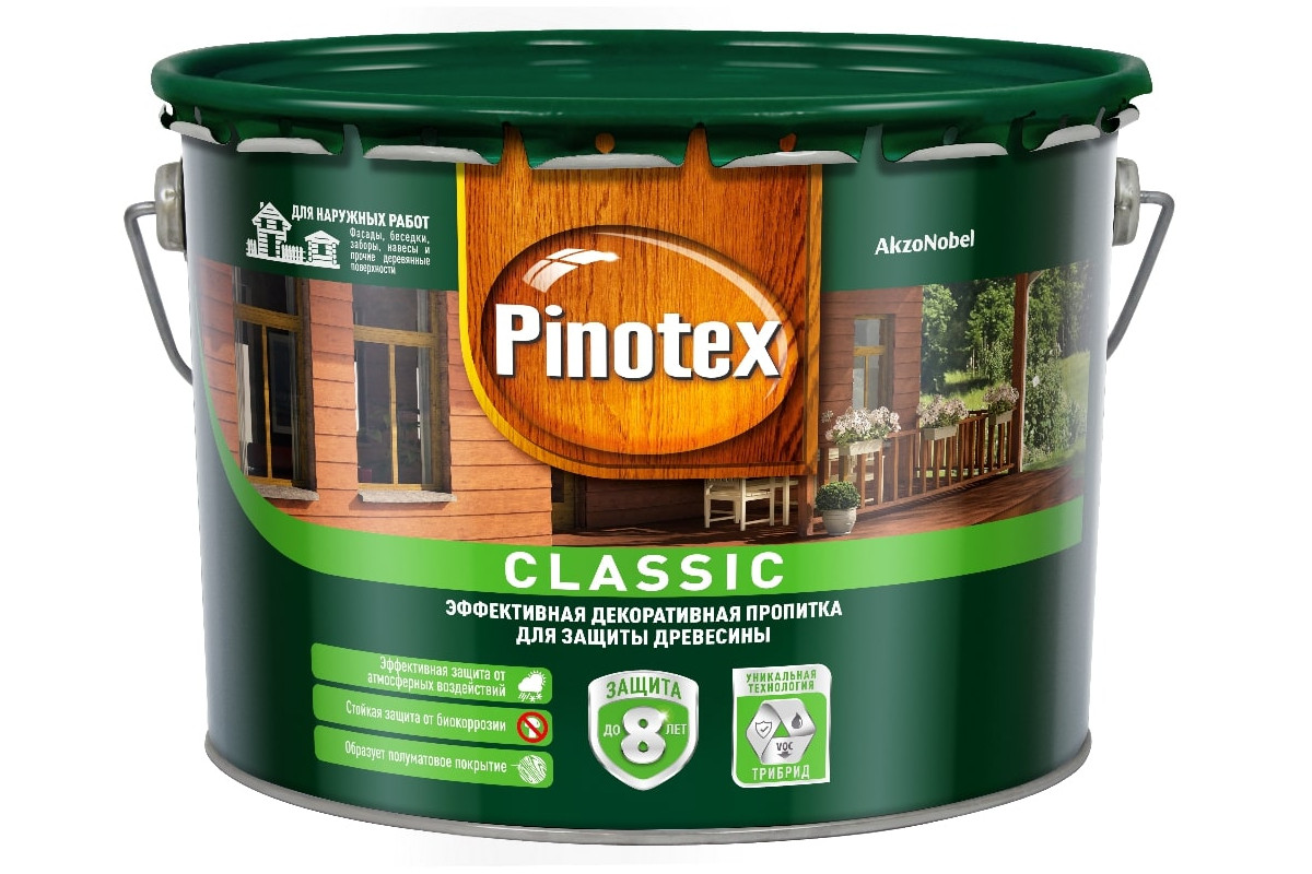 Пропитка PINOTEX Классик бесцветный CLR 9л для наружных работ база под колеровку