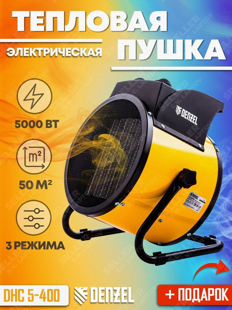 Тепловая пушка DENZEL керамический нагреватель DHC 5-400, 220 В 96428 - эффективное оборудование, предназначенное для обогрева жилых и нежилых помещений. а также просушки различных поверхностей на строительных объектах. Имеет термостат и защиту от перегрева. Корпус выполнен из листовой стали. Можно менять угол наклона пушки посредством винтов, тем самым направляя тепловой поток в необходимое место.