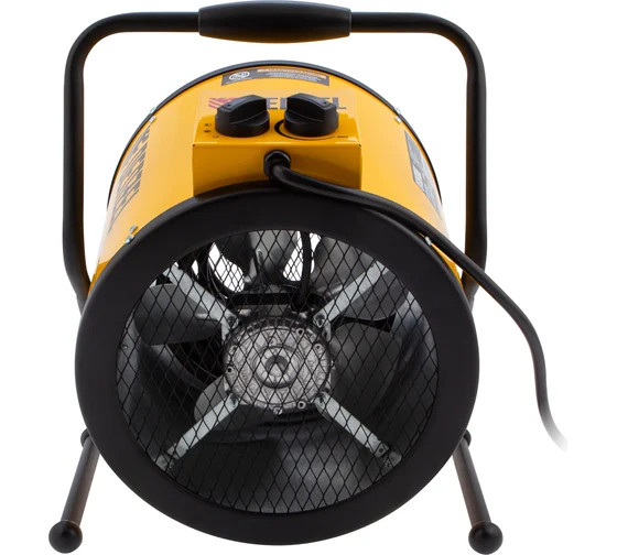 Тепловая пушка Denzel SFH-9000, 400 В, 850 м3/ч, 3 режима, вентилятор, 6000/9000 Вт 96439 высокой мощности для профессионального применения на стройке, в гаражах и мастерских. Пушка имеет двойные стенки корпуса, что предотвращает возможность получения ожогов, а вентилятор увеличенного размера создает мощный воздушный поток, благодаря которому существенно сокращается время на просушку различных объектов. На корпусе размещён блок управления с двумя регуляторами. Одним устанавливается режим работы: вентиляция, обогрев 6000 Вт, обогрев 9000 Вт, вторым – желаемую температуру, которую необходимо поддерживать в помещении (используется встроенный биметаллический термостат). Подставка и ручка выполнены из изогнутой стальной трубки, на которой закреплены резиновые не скользящие опоры и рукоятка для перемещения пушек.