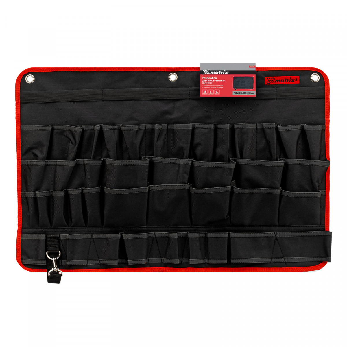 Настенная раскладка для инструмента Matrix 90245 размером 675 х 450 мм предназначена для хранения слесарных, монтажных и других принадлежностей. Благодаря ей все инструменты будут на своих местах и не потеряются. Разместить раскладку очень просто — она вешается на стену при помощи установленных в материале люверсов. Будет полезна дома, на даче и в гараже.