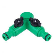 Распределитель изготовлен из ударопрочного пластика. Имеет два выхода с вентелем на шланг размером 1/2, 5/8 либо на быстросъемные переходники для шланга либого диаметра.