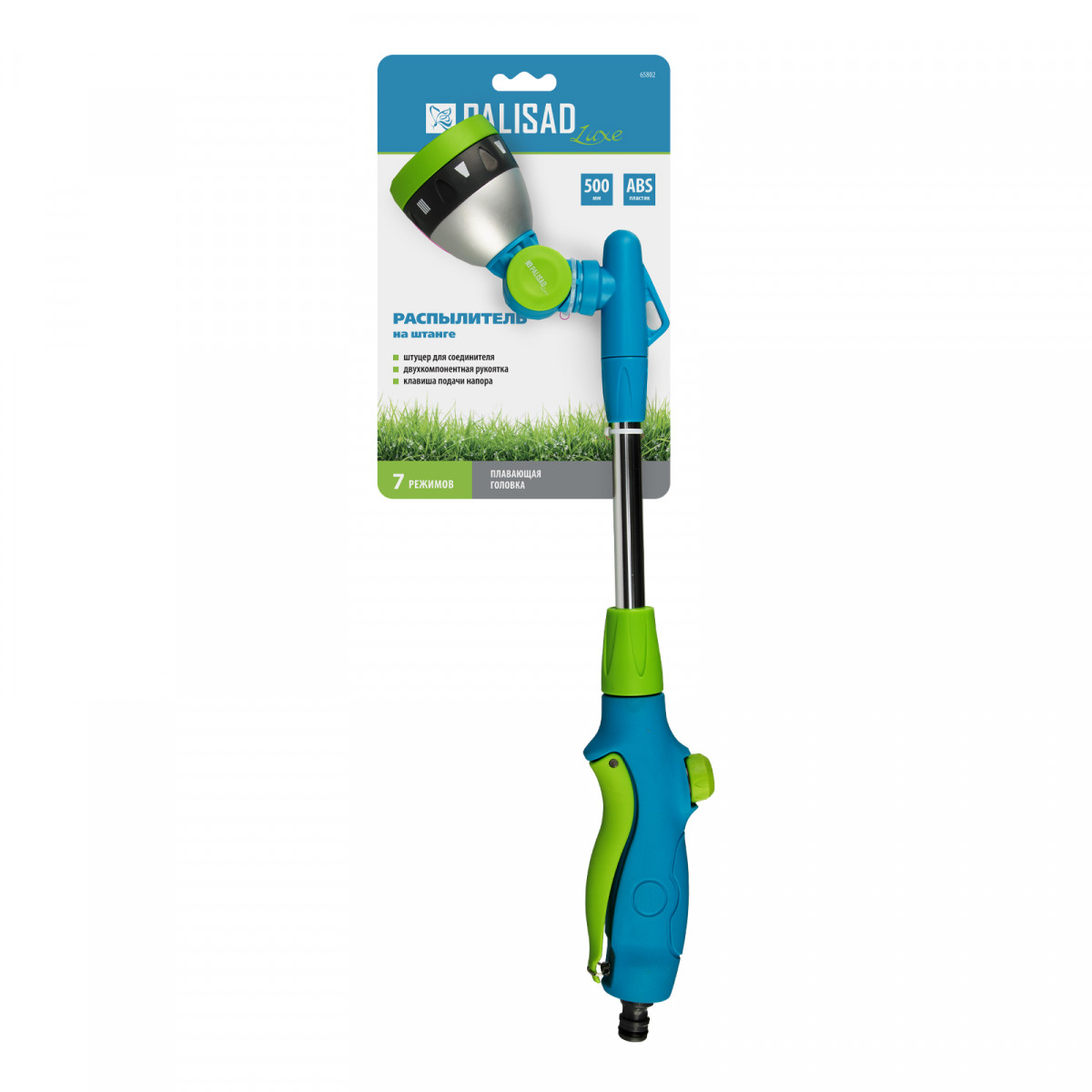 Распылитель Palisad Luxe 65802 на алюминиевой штанге длиной 500 мм, с 7 режимами работы и поворотной головой, подходит для орошения участков большой площади и растений в цветочных горшках, а также для очистки удаленных и труднодоступных мест. Расход воды можно плавно регулировать одной рукой, что облегчает решение поставленных задач.