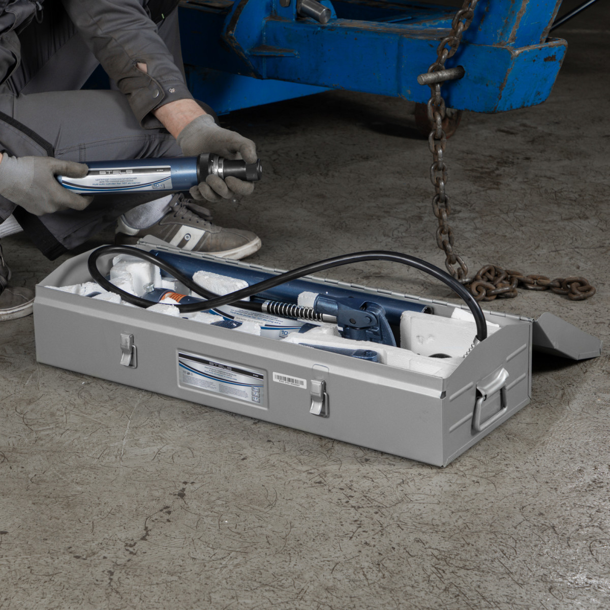 Растяжка гидравлическая, 10 т, набор из 17 предметов, 7 сменных насадок, в металлическом кейсе Stels
