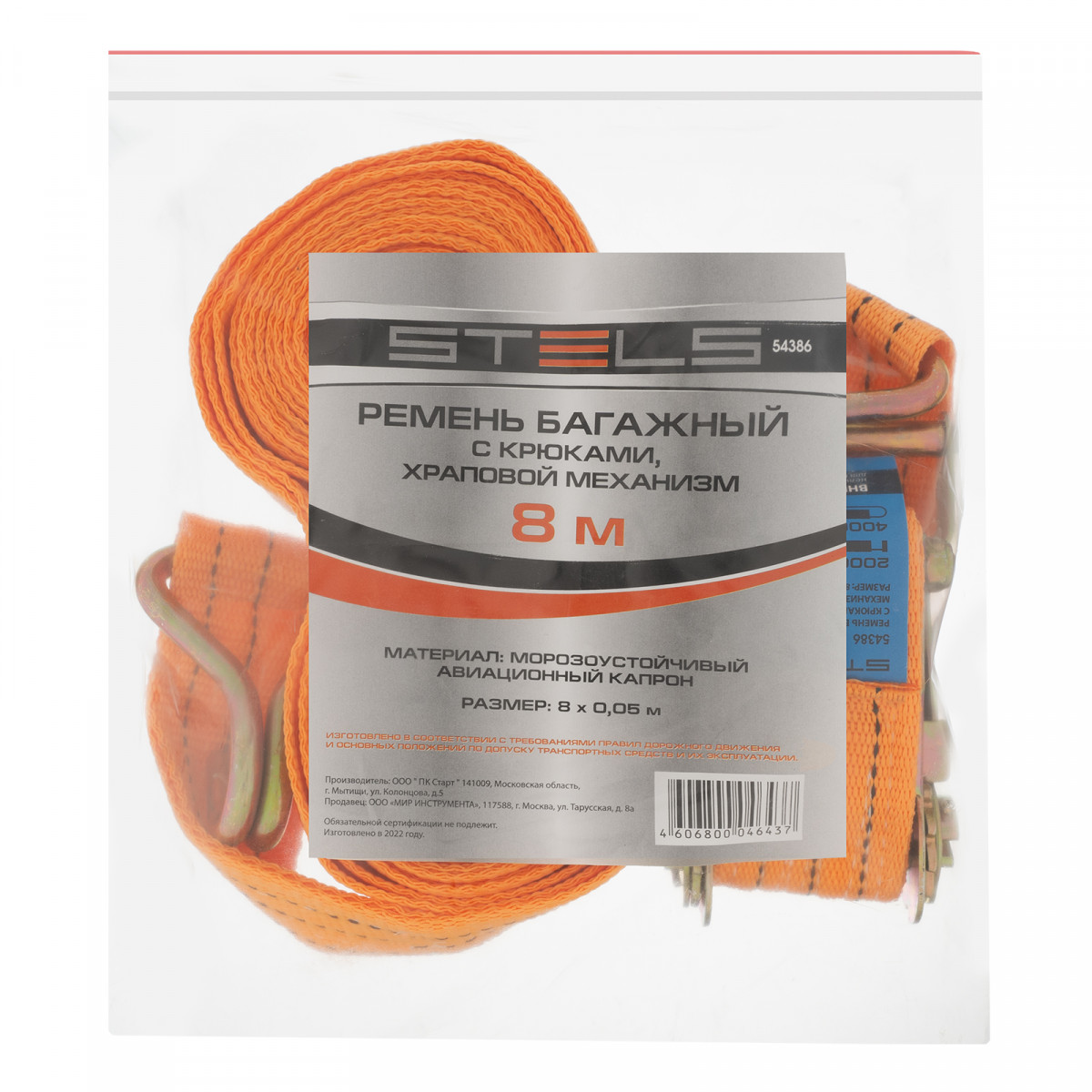 Ремень багажный с крюками, 0.05 х 8 м, храповой механизм Stels