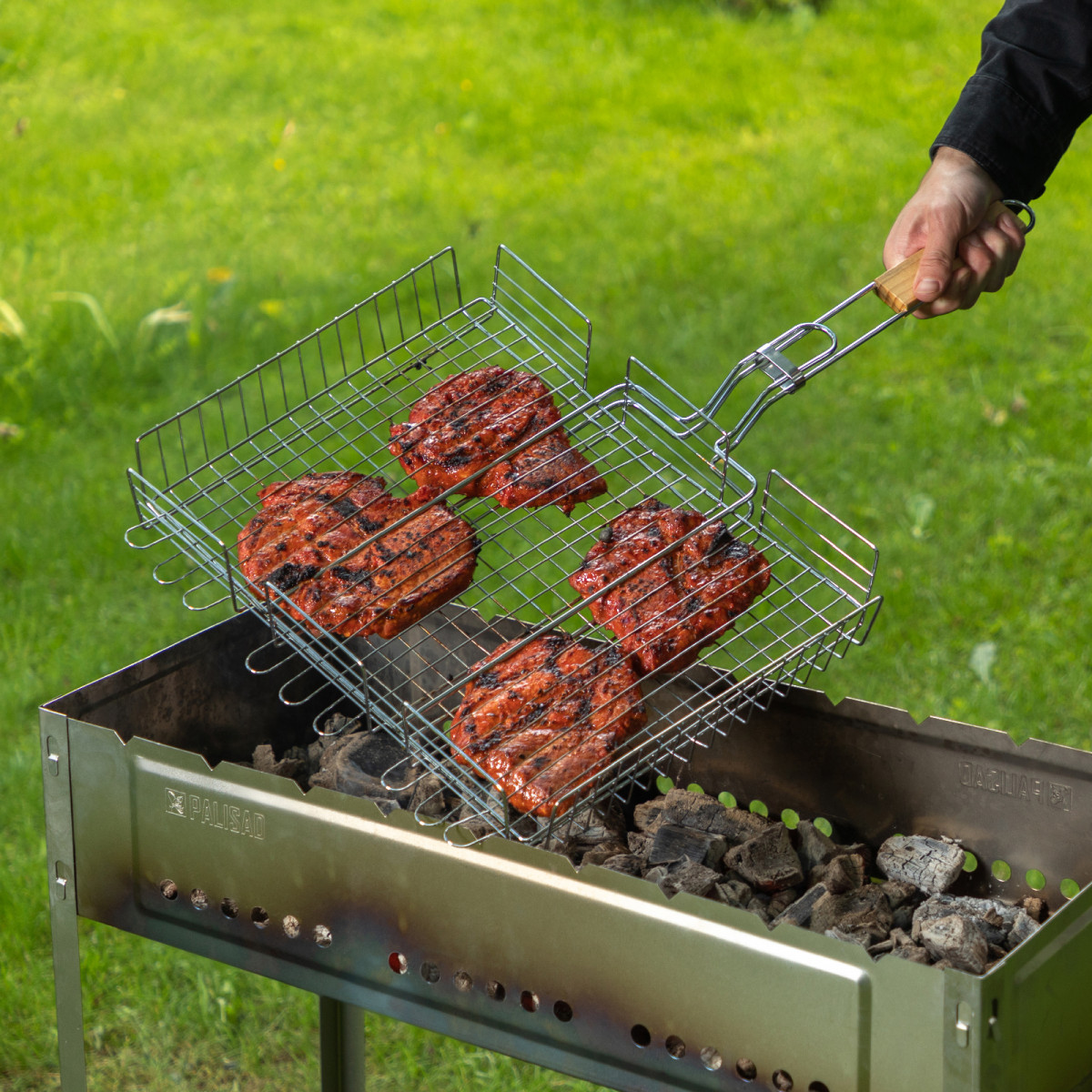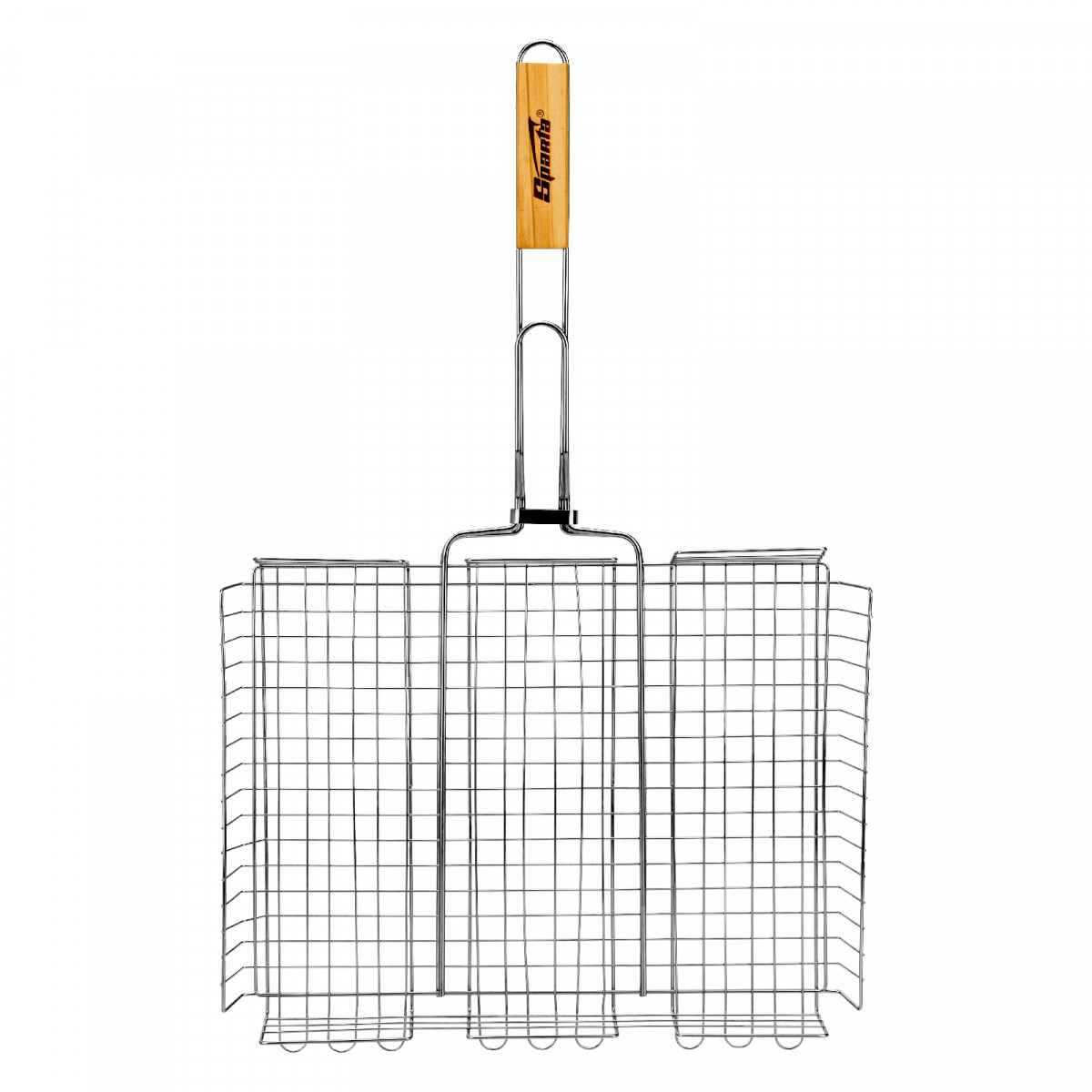Объемная хромированная решетка-гриль Sparta 69561 размером 300 х 400 х 65 мм используется для удобного размещения продуктов и их приготовления на углях. С ее помощью мясо, рыба или овощи обжариваются равномерно с двух сторон, что позволяет получить вкусные блюда. За счет регулировки высоты решетки возможно приготовление продуктов любого размера без потери сока.