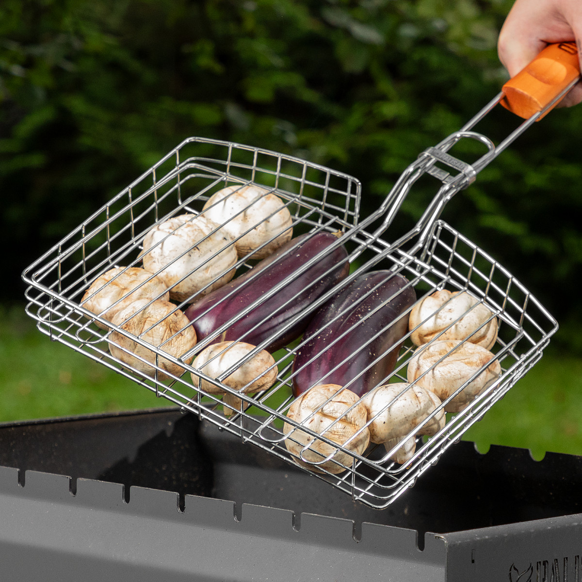 • За счет увеличенных опорных стержней решетка надежно фиксируется на мангале, а для жарки используется вся рабочая площадь.