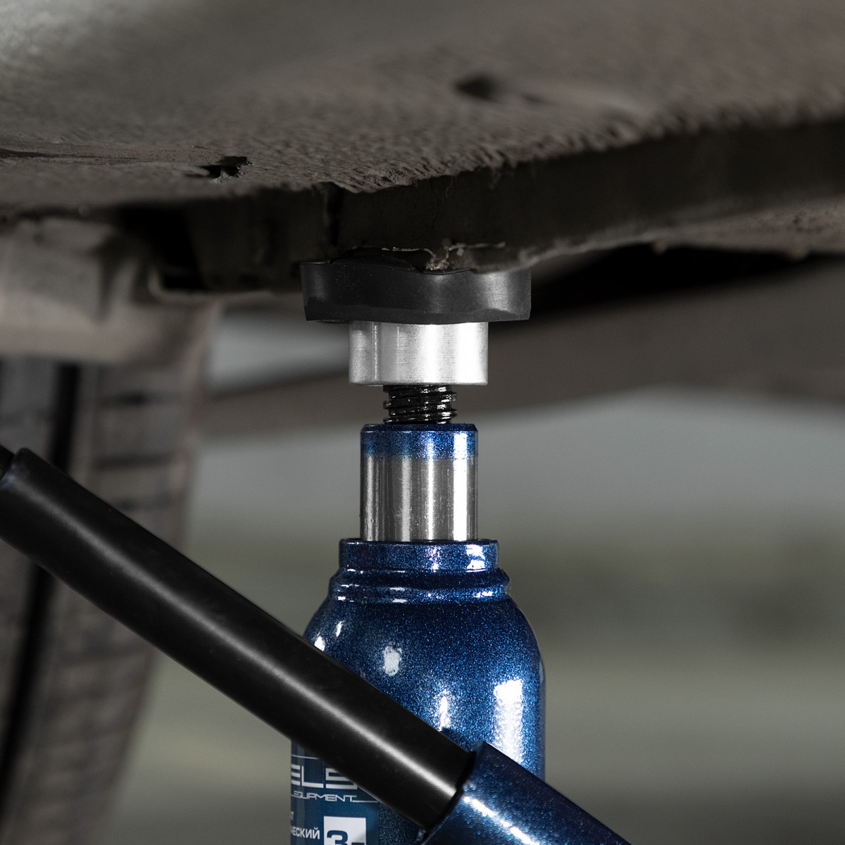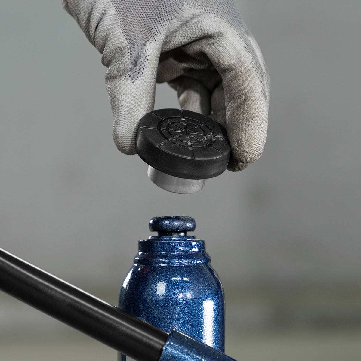 • Прочность — адаптер из стали и резины защищает от повреждений кузов машины и опорную площадку домкрата даже при подъеме максимально возможного веса.
