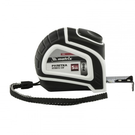 Рулетка Autostop 5 м*25 мм обрезиненный корпус, автоматическая фиксация МАТRIХ
