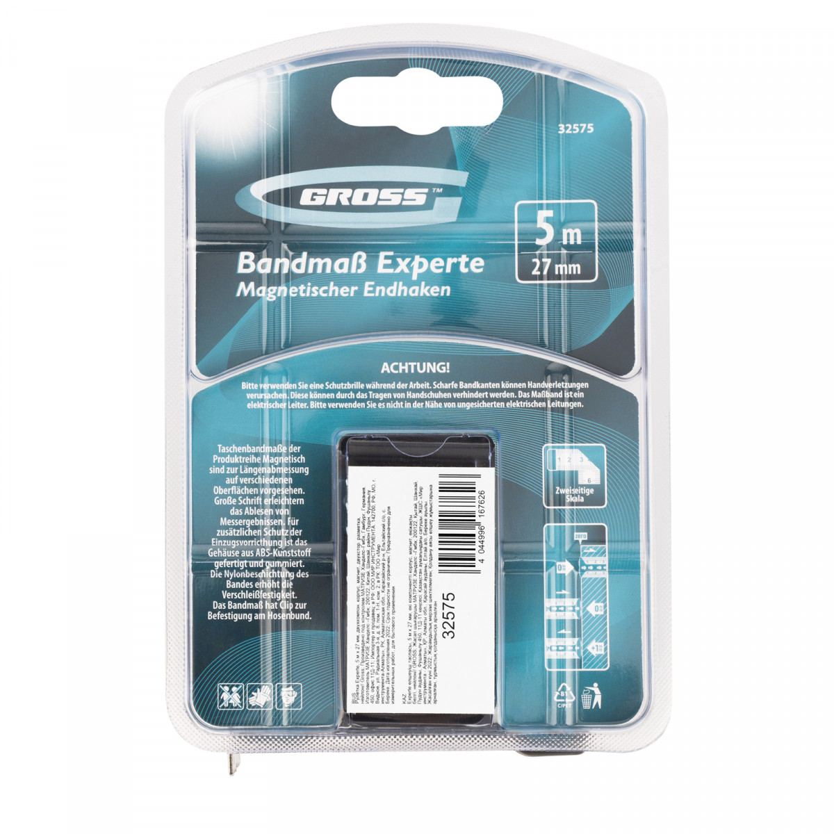 Рулетка Experte,5 м x 27 мм,двухкомпонентный корпус,магнит,двухсторонняя разметка,нейлон Gross