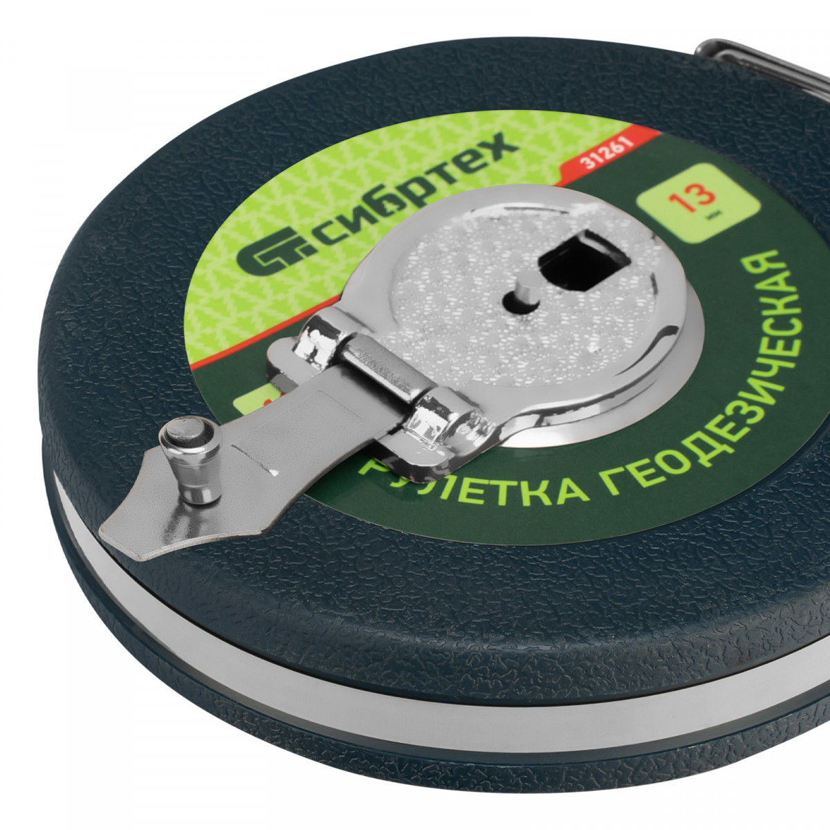 Геодезическая рулетка Сибртех 31261 с измерительным полотном длиной 20 м и шириной 13 мм, в закрытом корпусе, с фибергласовой лентой, — измерительный инструмент для определения расстояний и проведения замеров различных объектов. Рулетка пригодится при выполнении строительных и ремонтных работ, обмеров садовых участков, а также при формировании ландшафтов.