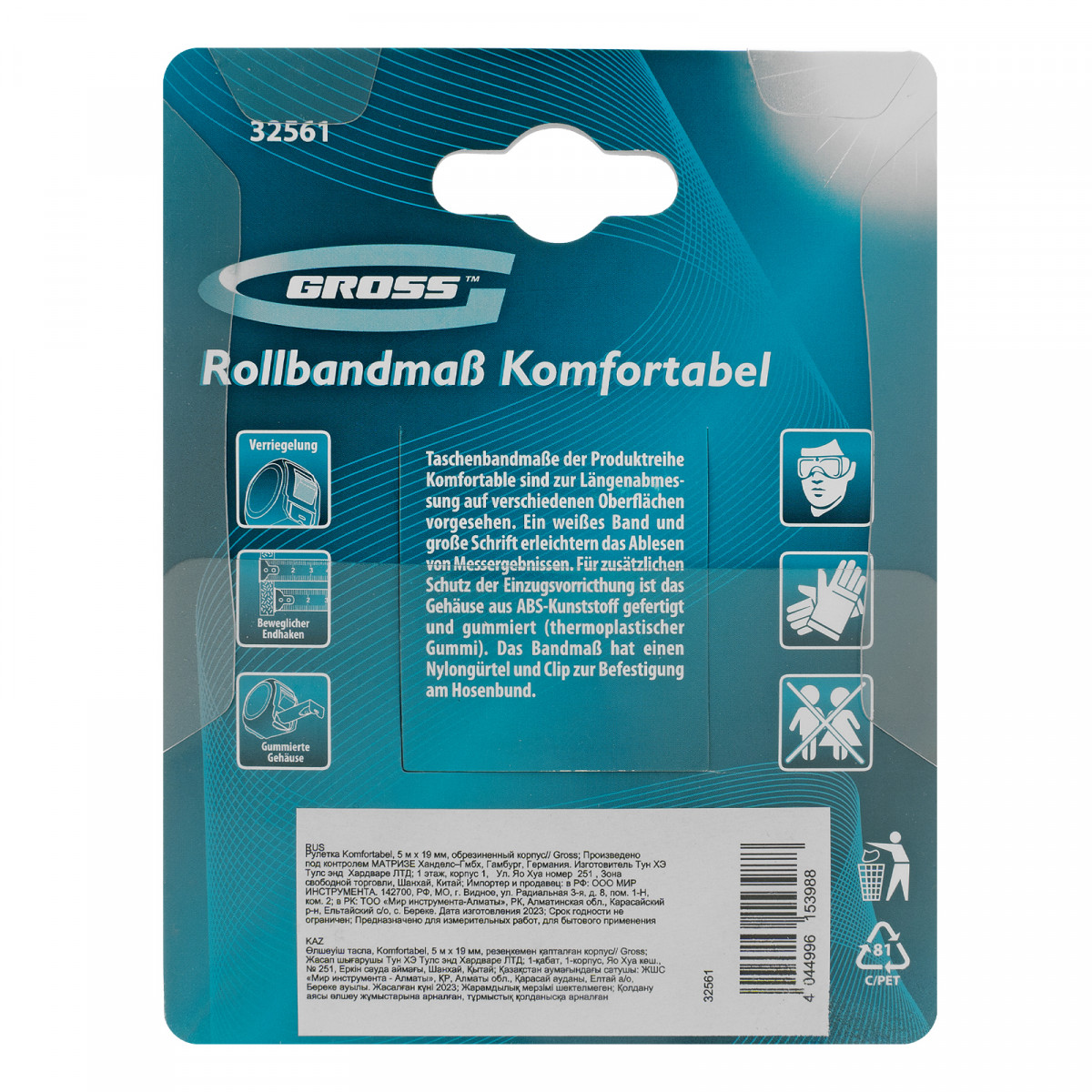 Рулетка Gross «Komfortabel» 32561 в обрезиненном корпусе с лентой 5 м х 19 мм — это удобный карманный инструмент, необходимый при проведении ремонтных и строительных работ. С ее помощью можно провести линейные измерения ровных поверхностей, различных заготовок, материалов, конструкций и т.д.
