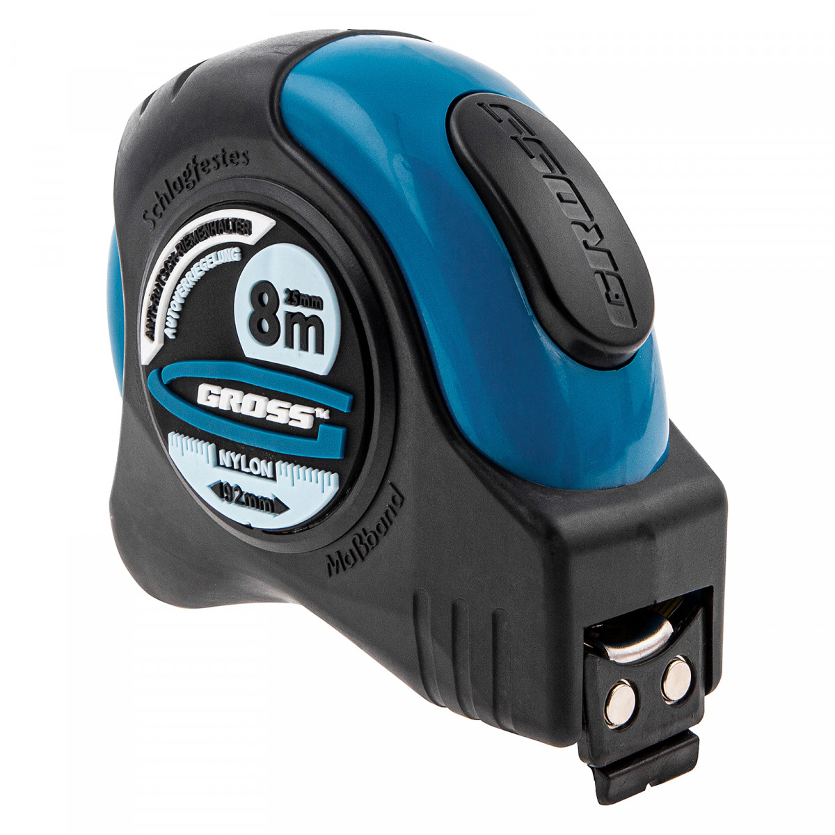 Рулетка "Schlagfest",8 м x 25 мм,магнитный обрезиненный зацеп,двусторонняя шкала,Нейлоновое покрытие,автоматическая фиксация Gross