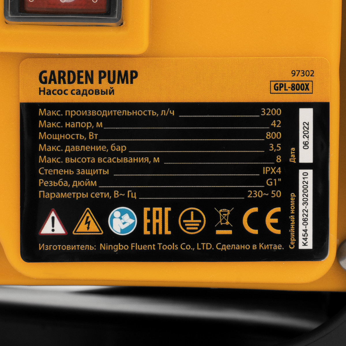 Садовый поверхностный насос GPL800Х, 800 Вт, 3200 л/ч, подъем 42 м, нержавейка Denzel