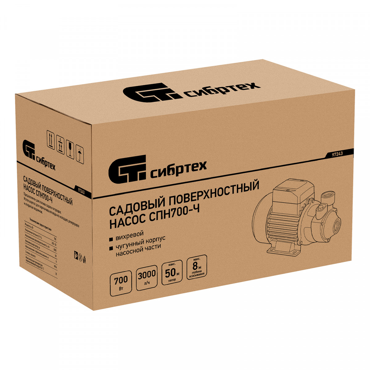 Садовый поверхностный насос СПН700-Ч, 700 Вт, напор 50 м, 3000 л/ч, чугун Сибртех