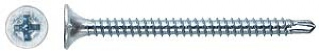 Саморез потайная головка, шлиц Philips №2. Применяются для крепления гипсокортона к металлическим профелям. Имеют частую резьбу и наконечниксверло. Покрытие оцинкованное. Материал сталь.