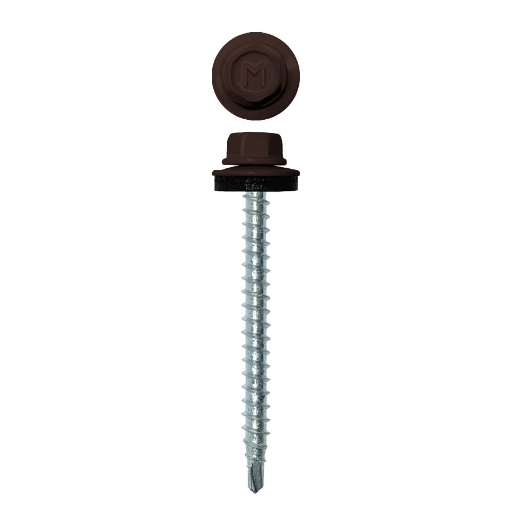 Саморез 4,8*50 сверло,гол.шестигр.с шайбой, RAL 8017 (Шоколадно-коричневый) Pront
