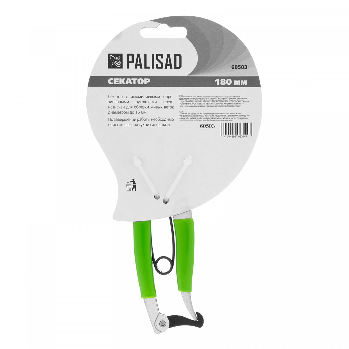 Секатор прямого реза Palisad 60503 длиной 180 мм, с металлическими обрезиненными рукоятками, используется для обрезки живых веток диаметром до 15 мм. Пригодится для ухода за садом и огородом, а также для оформления крон бонсай и создания топиарных скульптур. Параллельно движущиеся лезвия обеспечивают гладкий и ровный срез, минимально повреждая растение. Повысить качество работы секатора можно, отрегулировав плотность смыкания лезвий.