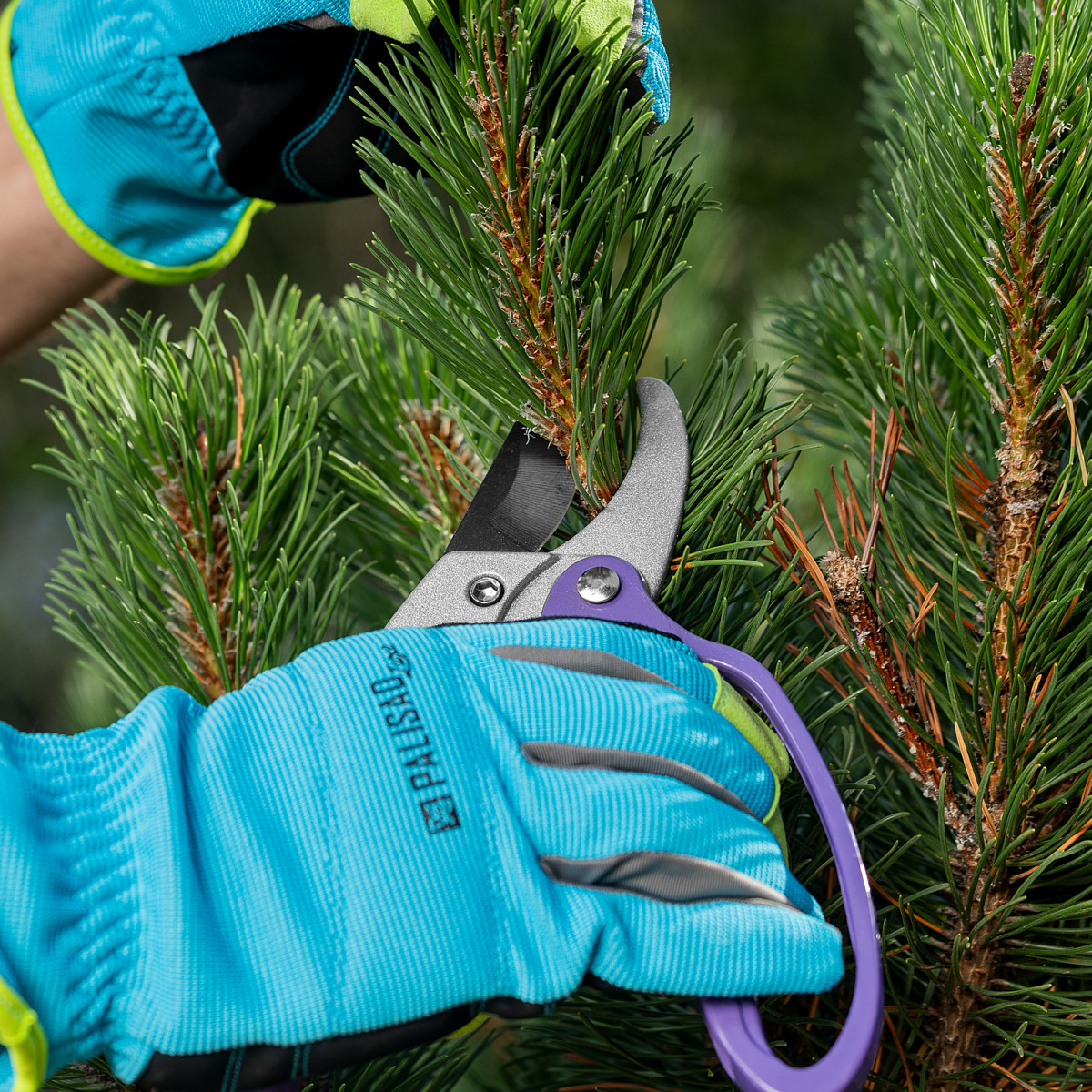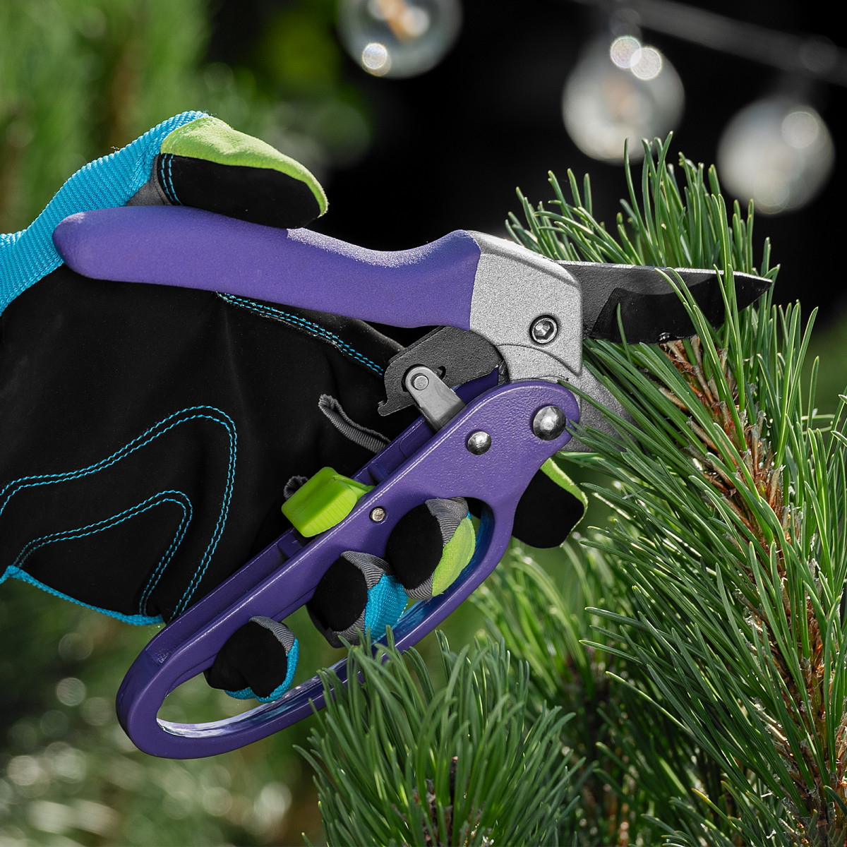 - Безопасность — гарда на нижней рукоятке защищает пальцы от травм, фиксатор удерживает лезвия в сомкнутом положении во время хранения и транспортировки.