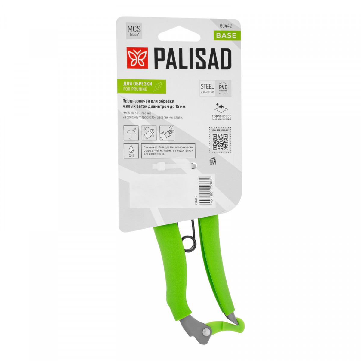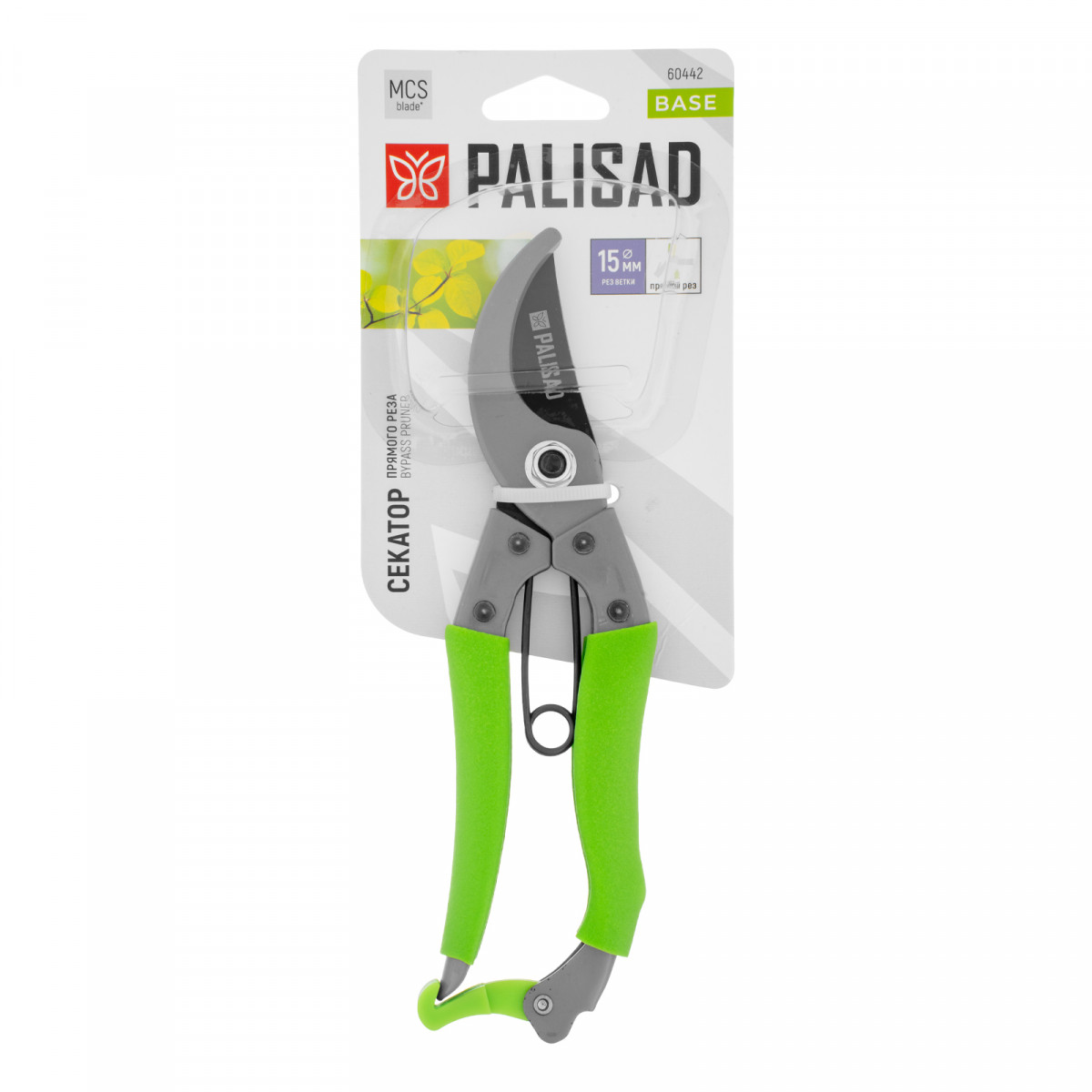 Секатор прямого реза, 200 мм, стальные рукоятки, ПВХ оболочка, BASE Palisad