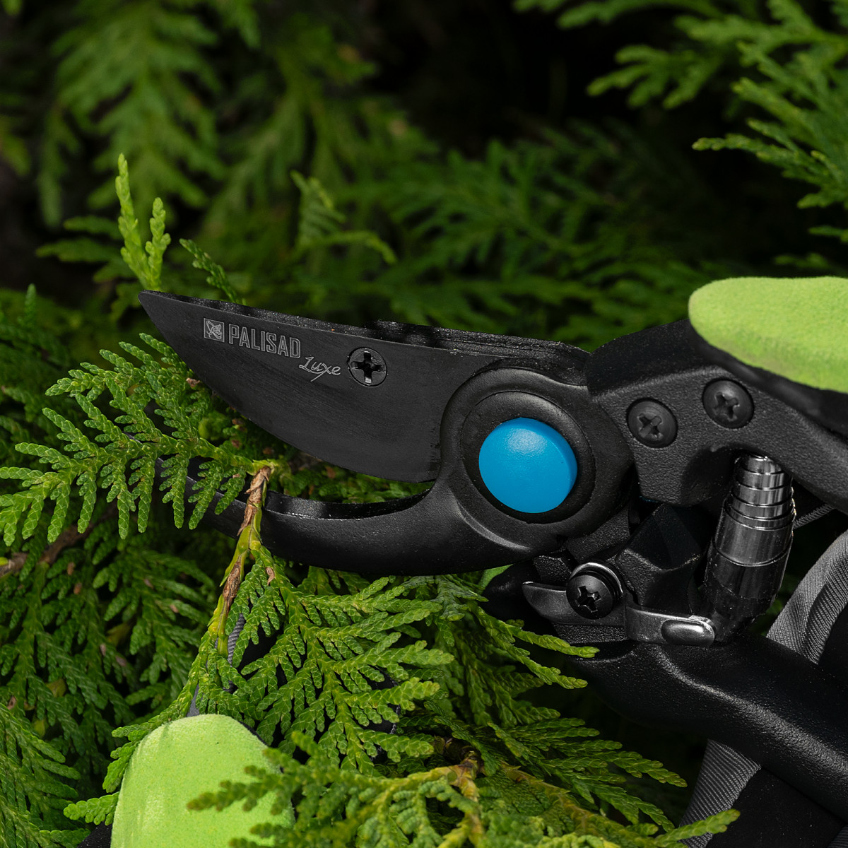 Секатор прямого реза Palisad LUXE 60472 длиной 230 мм, с алюминиевыми рукоятками, используется для срезания живых веток диаметром до 22 мм. Гладкость и аккуратность среза достигается благодаря лезвиям, перемещающимся в параллельных плоскостях. Тефлоновое покрытие режущего лезвия облегчает рез, а также защищает рабочую поверхность от коррозии. Обрезка веток таким секатором является максимально щадящей для растения.