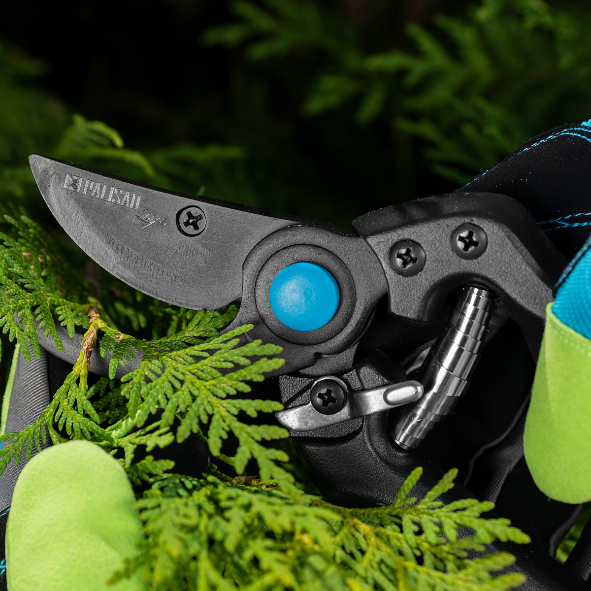 Секатор прямого реза Palisad LUXE длиной 230 мм, с алюминиевыми рукоятками, используется для срезания живых веток диаметром до 22 мм. Гладкость и аккуратность среза достигается благодаря лезвиям, перемещающимся в параллельных плоскостях. Тефлоновое покрытие режущего лезвия облегчает рез, а также защищает рабочую поверхность от коррозии. Обрезка веток таким секатором является максимально щадящей для растения.