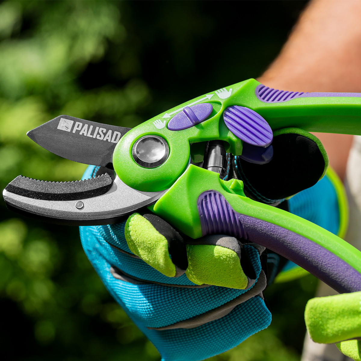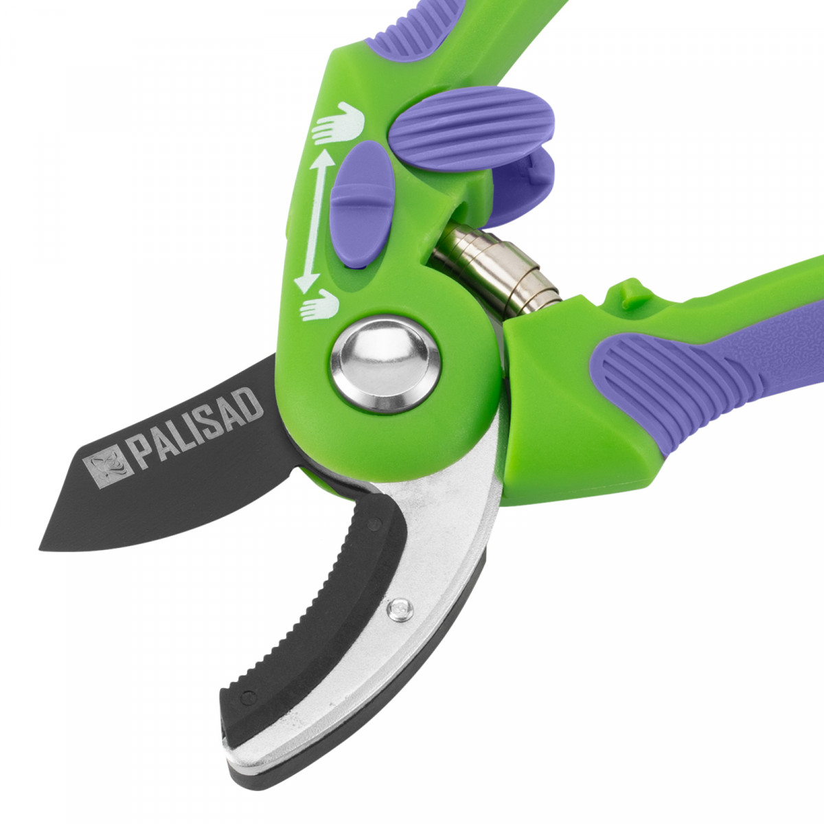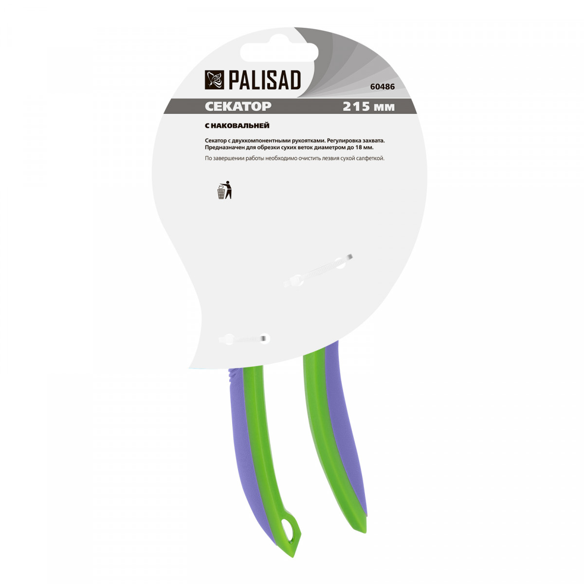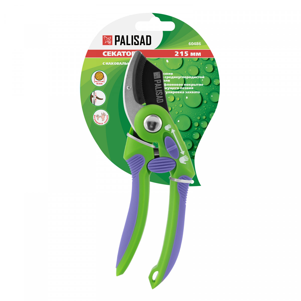 Секатор с наковальней, 215 мм, регулировка захвата, двухкомпонентные рукоятки, Palisad