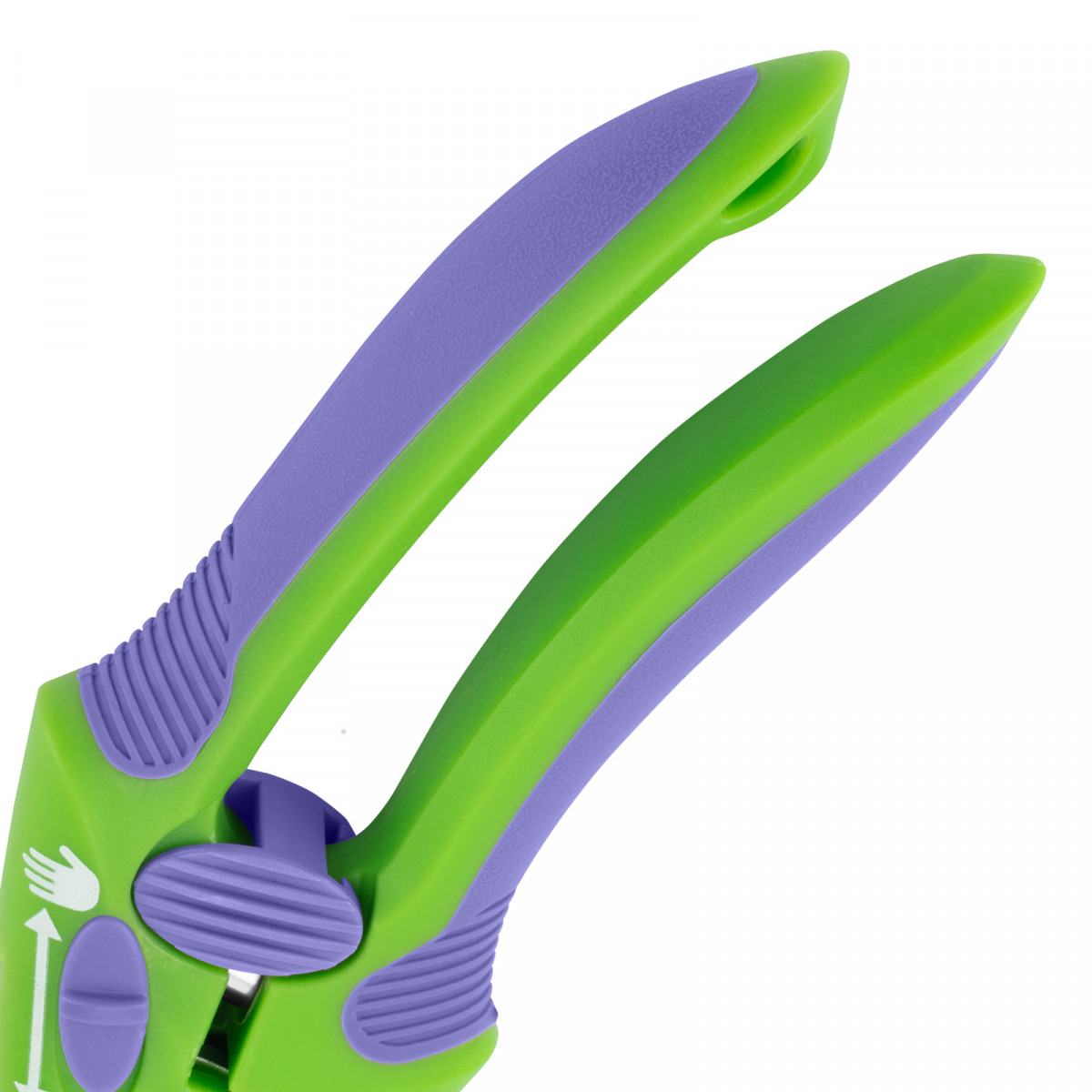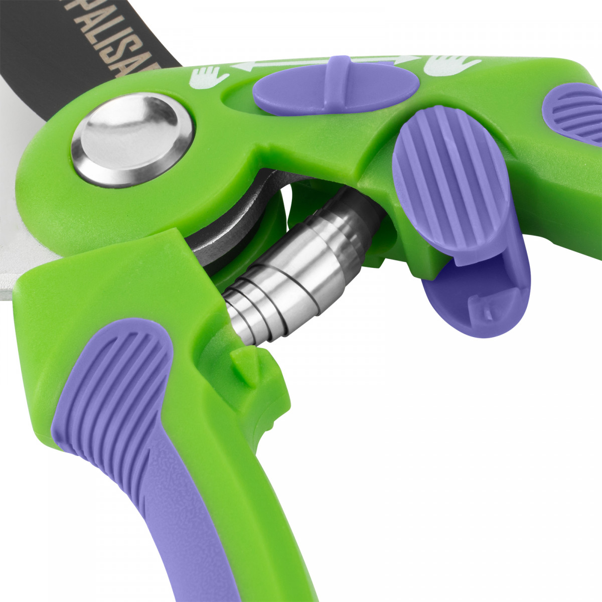 • Регулировка величины захвата — переключатель «большая-малая рука» позволяет устанавливать ширину раскрытия лезвий.