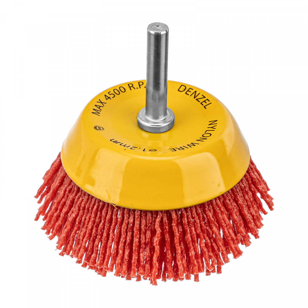 Щетка для дрели, 75 мм, Чашка, со шпилькой, нейлоновая щетина Denzel