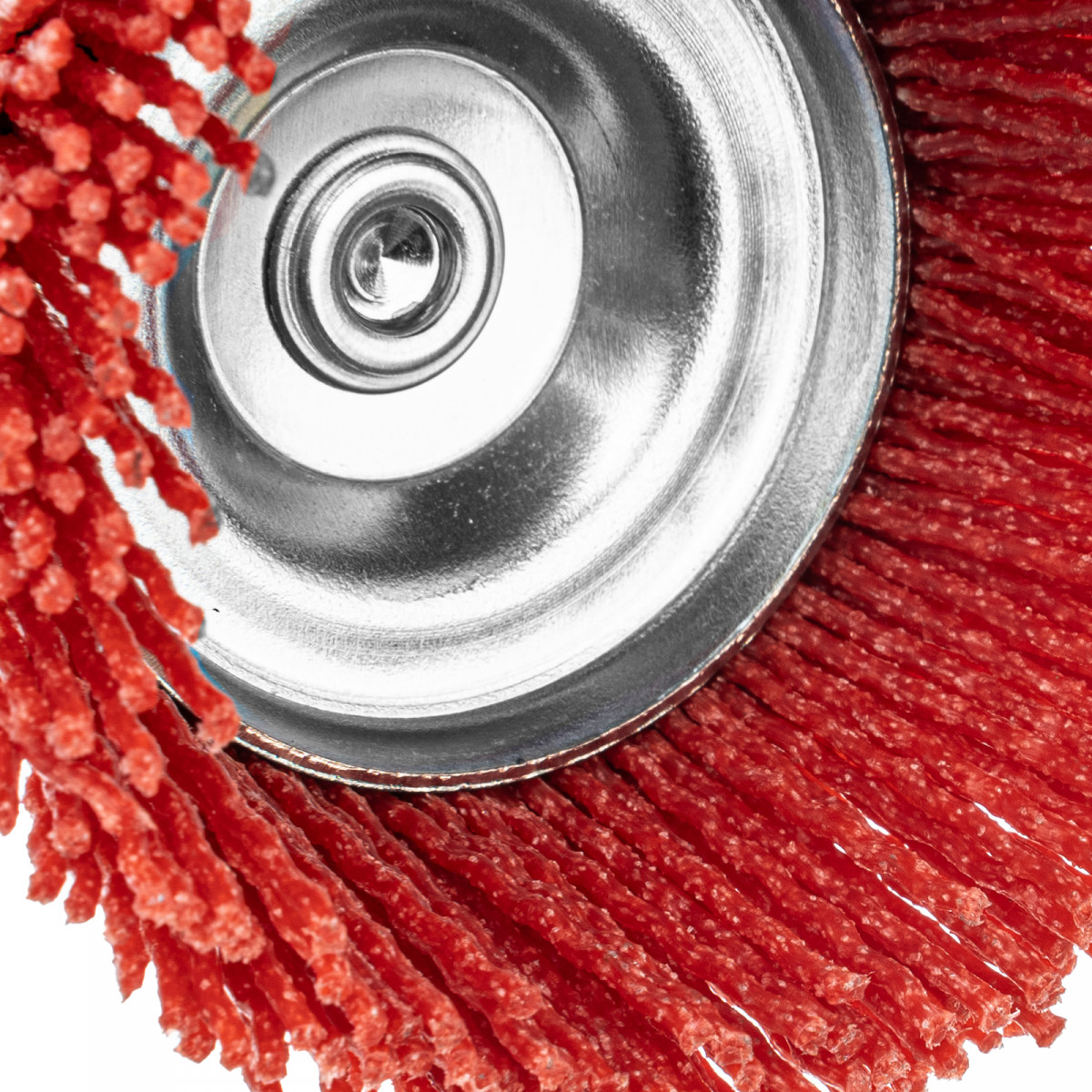 Щетка Denzel 74436 в форме чашки диаметром 75 мм, со шпилькой и нейлоновой щетиной, — насадка для дрели, предназначенная для выполнения шлифовальных работ по пластику, древесине, стали и цветным металлам. Щетина изготовлена из высококачественного нейлона с нанесенным абразивом из оксида алюминия. Щетка оптимальна для деликатного удаления загрязнений, краски, пятен ржавчины с твердых поверхностей. Позволяет придать шероховатость поверхности, подходит для браширования древесины. Насадка удобна для обработки плоских деталей большой площади.