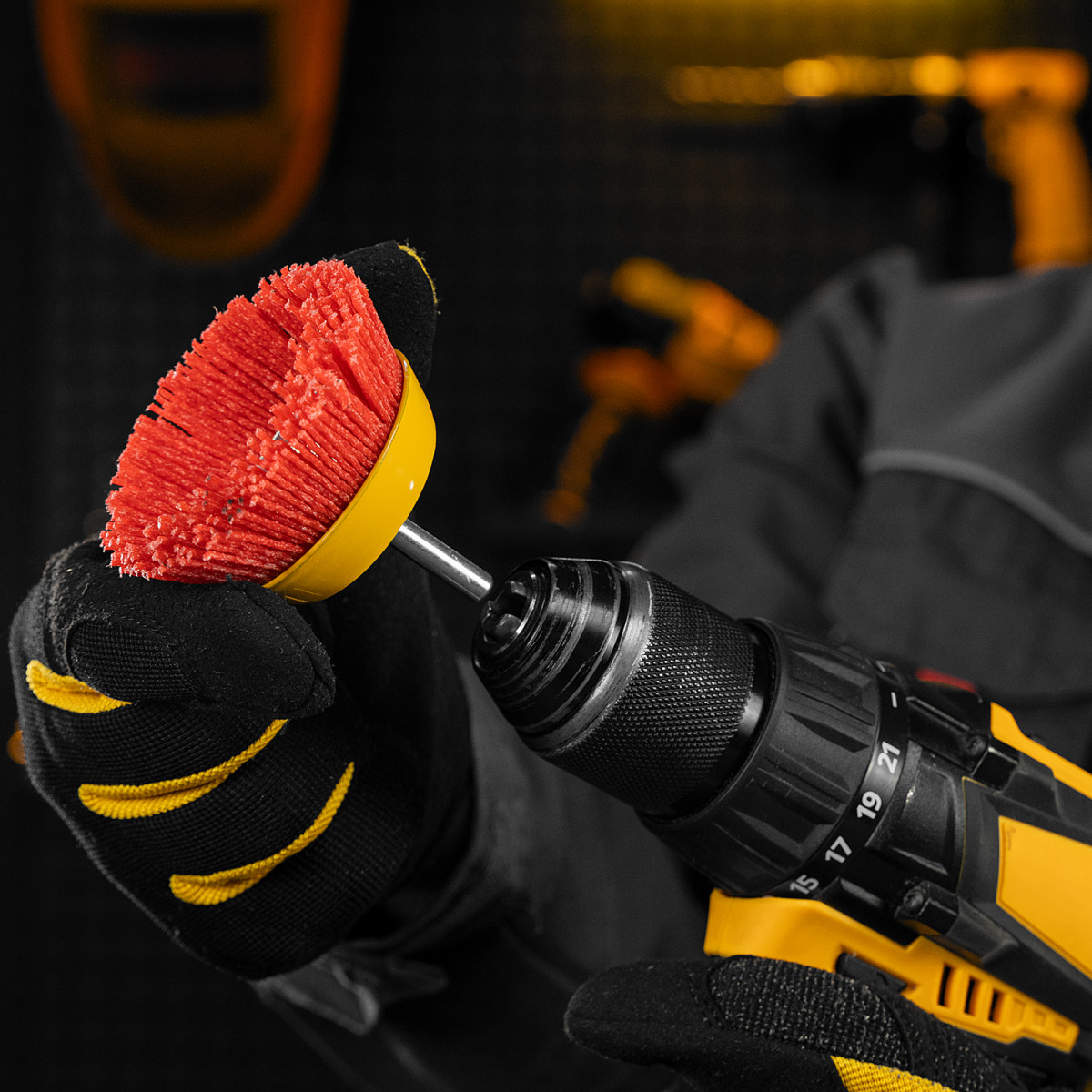 - Высокое качество обработки — в отличие от металлической, нейлоновая щетина не оставляет следов на деревянных поверхностях.