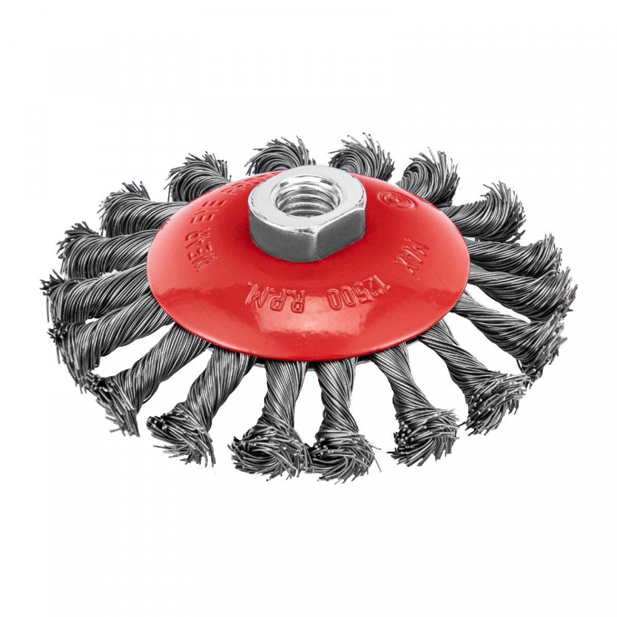 Щетка Matrix «тарелка» 74610 диаметром 115 мм, с щетиной из крученой проволоки толщиной 0,5 мм, устанавливается на УШМ при помощи гайки М14. Выполнена в форме тарелки, за счет чего подходит для грубой (черновой) обработки плоских и угловых поверхностей. Удаляет ржавчину, загрязнения, лакокрасочные покрытия, подходит для зачистки сварных швов. Использование на скорости до 12500 об/мин позволяет продлить срок службы насадки.
