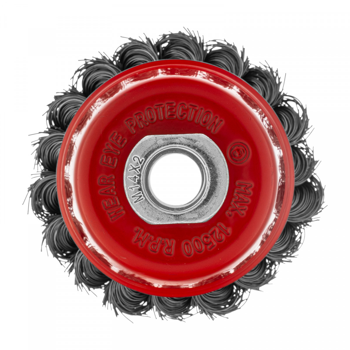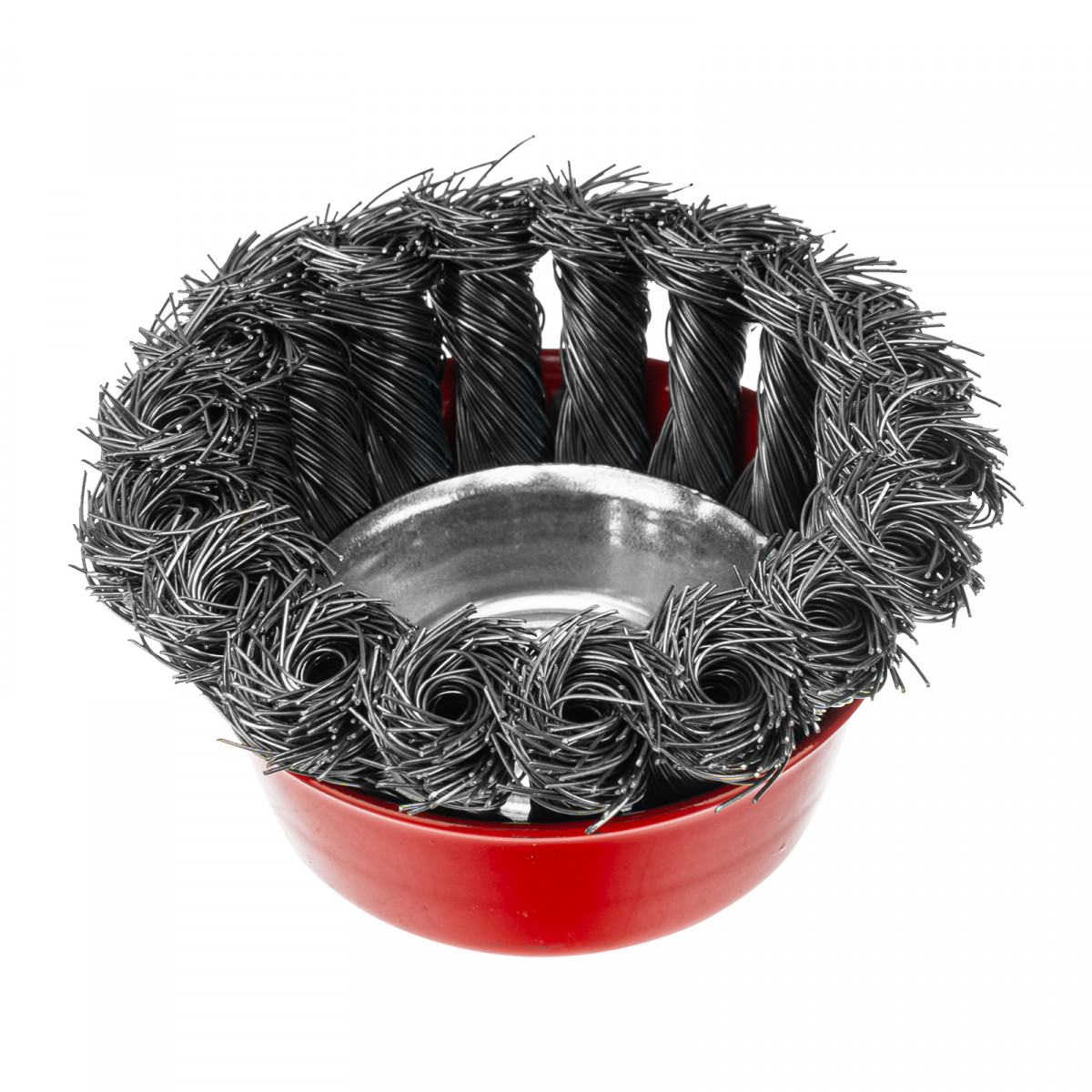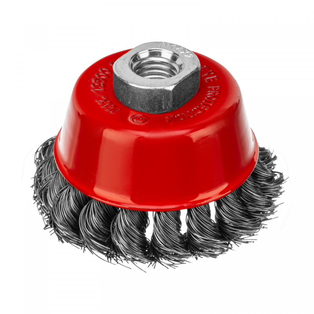 Щетка Matrix «Чашка» 74614 диаметром 75 мм, с присоединительной резьбой М14, с щетиной из крученой проволоки диаметром 0,35 мм, устанавливается на УШМ, поддерживающую работу со скоростью 12500 об/мин. Щетина предназначена для грубой (черновой) обработки поверхностей, менее агрессивной по сравнению с щетиной 0,5 мм. Изделие подходит для удаления загрязнений, снятия толстого слоя ржавчины, ЛКМ, зачистки сварных швов.