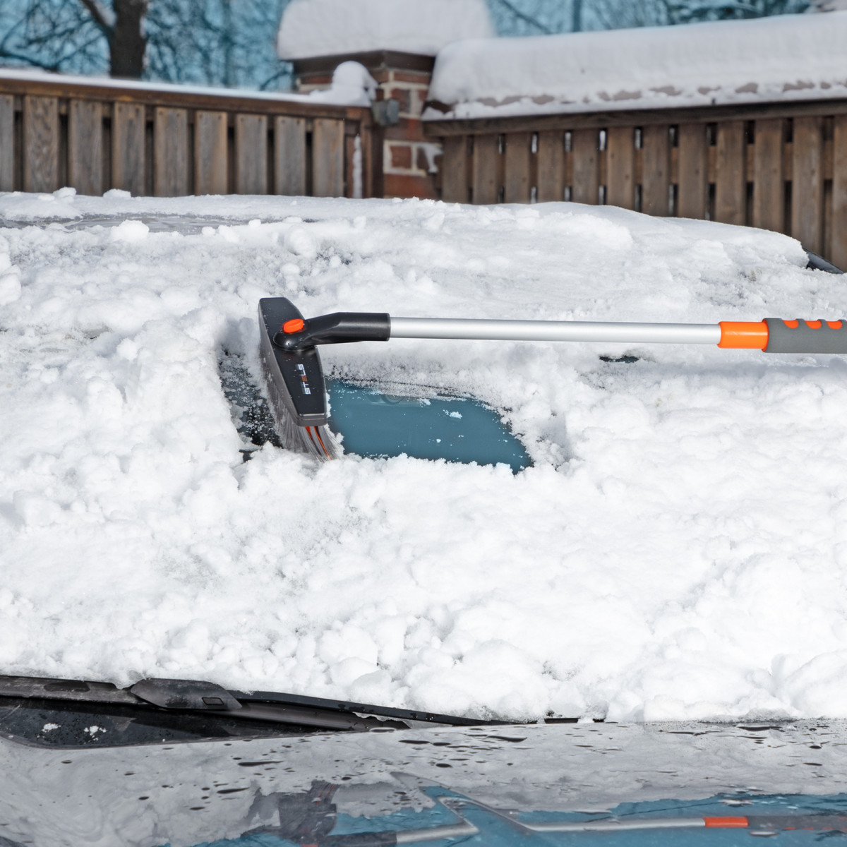- Щетка-скребок имеет плотную щетину, распушенную на концах, поэтому эффективно убирает слой снега, не царапая поверхность кузова.