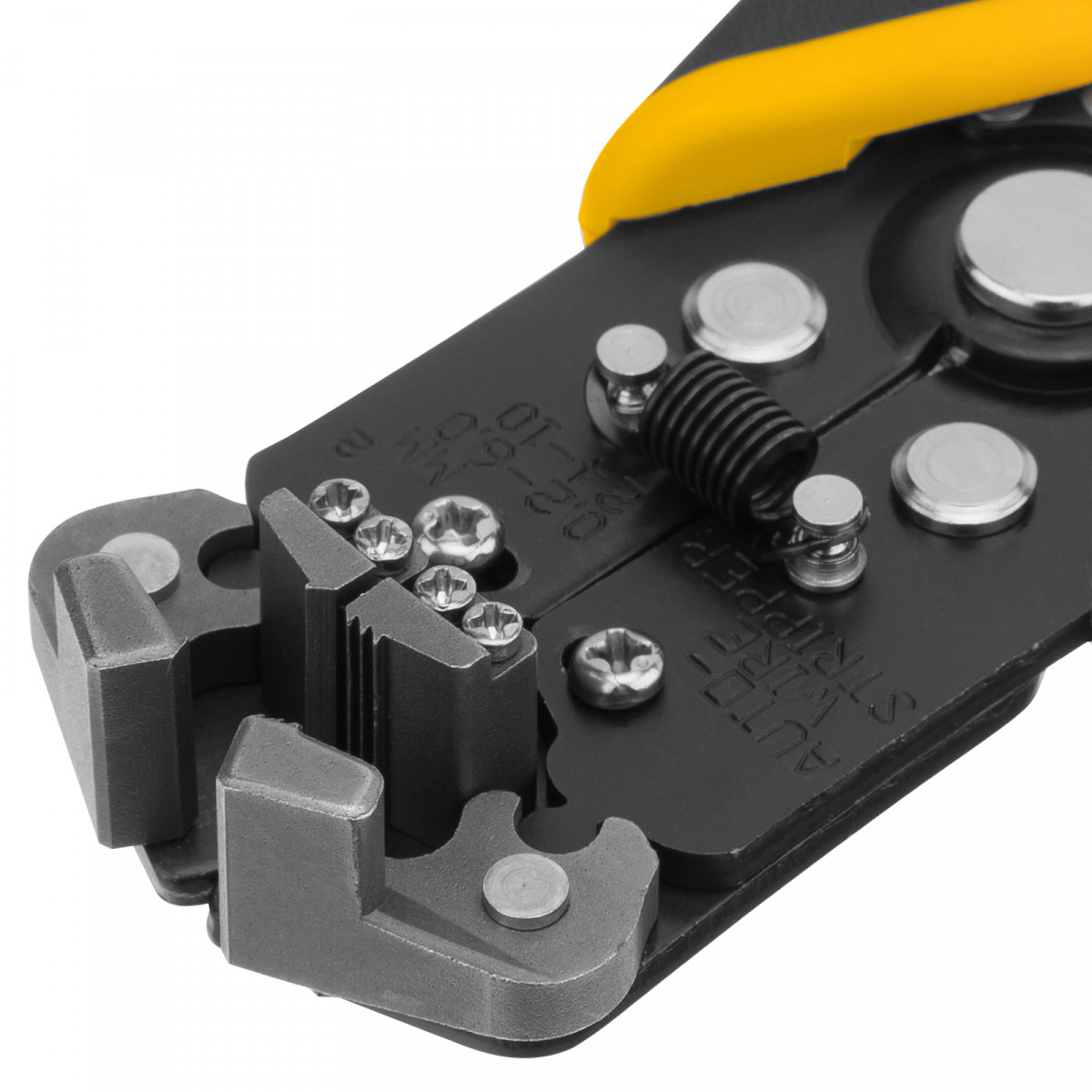 Щипцы Denzel 17742 — инструмент для зачистки электропроводов сечением 0,2-6 мм2 (22-10 AWG), способный дополнительно выполнять функцию обрезания проводов. Используется при проведении электромонтажных работ, подходит для профессионального применения.
