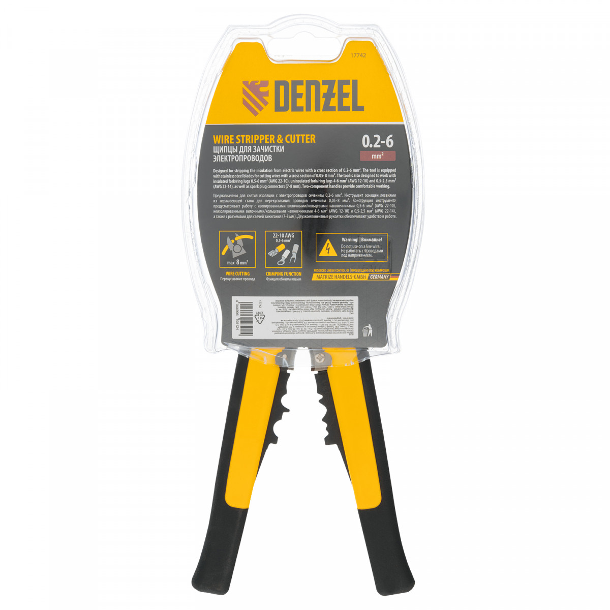 Щипцы для зачистки электропроводов 0,2-6 мм², функция обрезания проводов Denzel