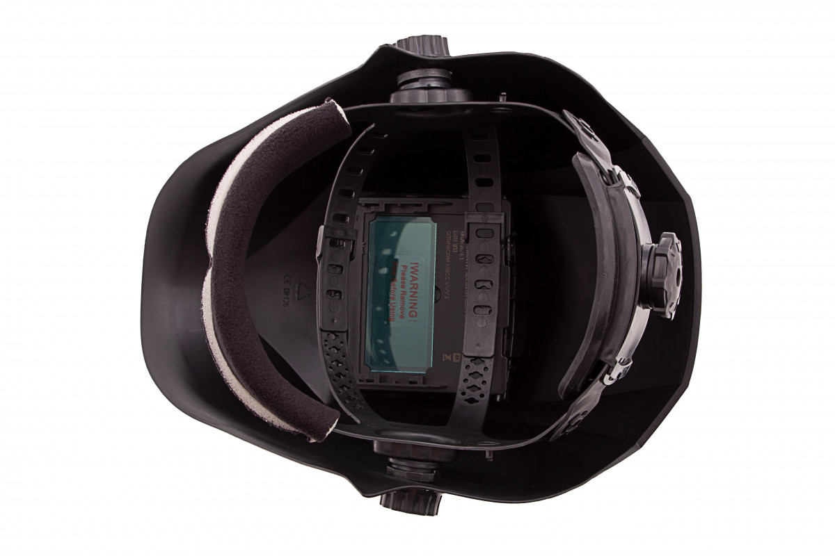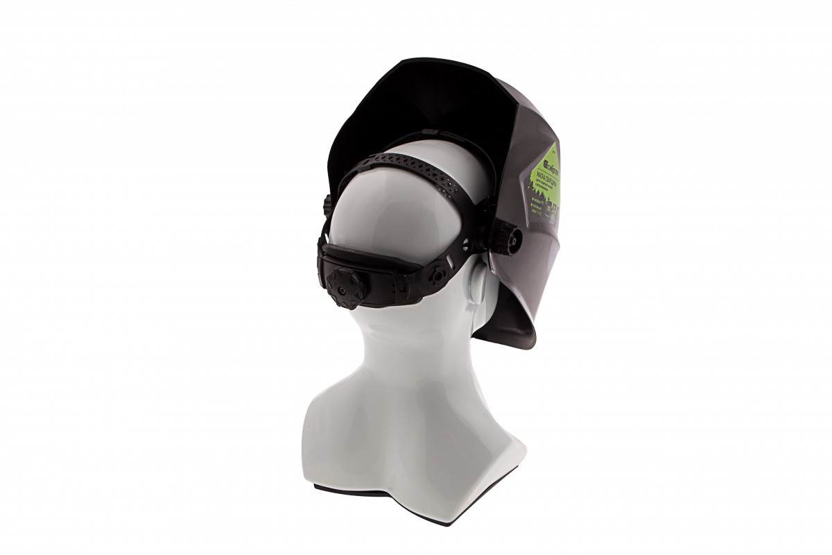 - Комфортная работа — регулируемое оголовье надежно фиксирует щиток, а поролоновая накладка и силиконовый обтюратор уменьшают трение ободка о лоб.