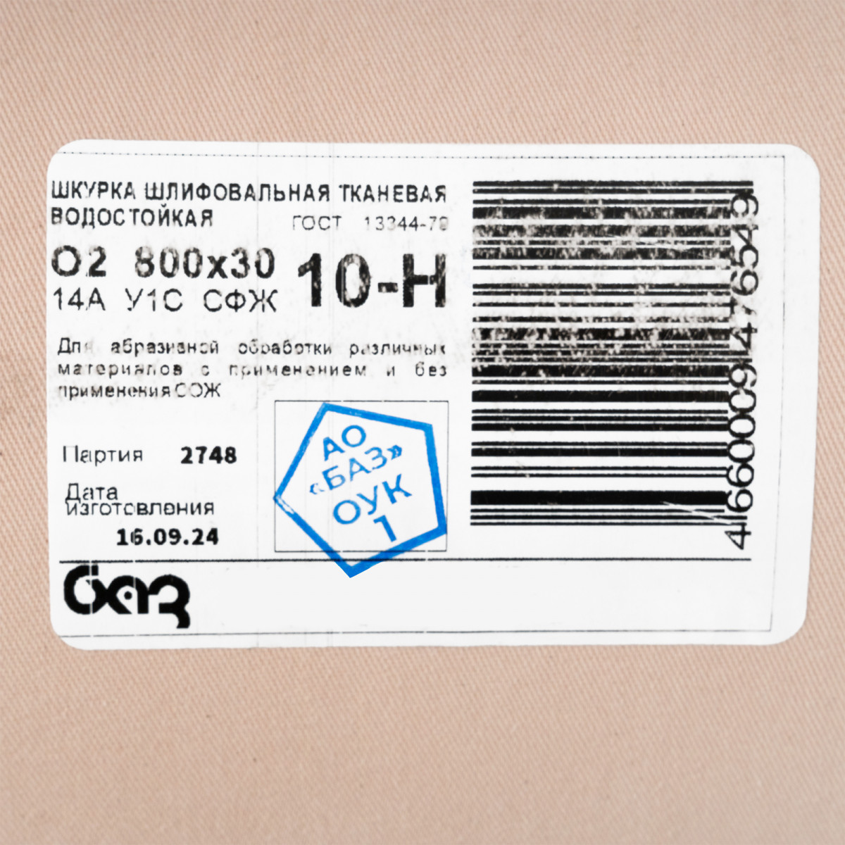 Шкурка на тканевой основе, зернистость № 10, 800 мм х 30 м, "БАЗ"